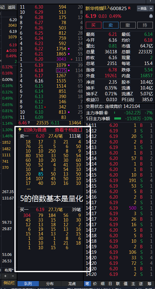 挂单为5的倍数的,基本是量化,新华被量化玩残废了。