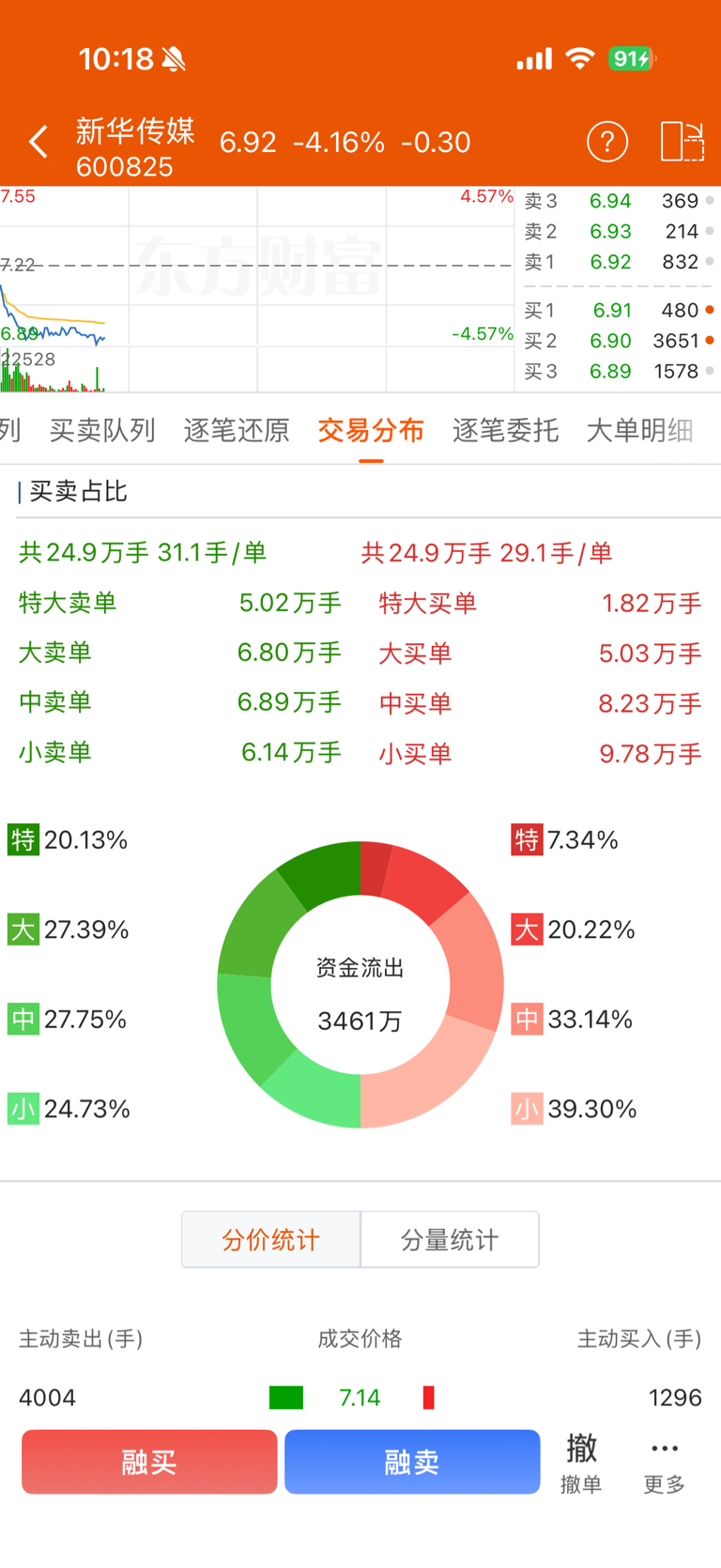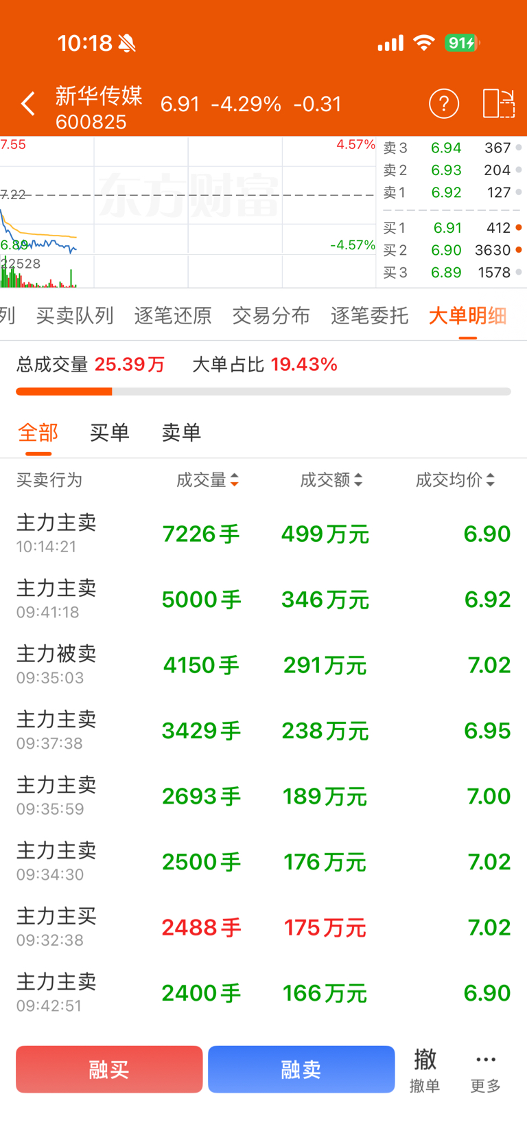 $新华传媒(SH600825)$ 卖单汹涌