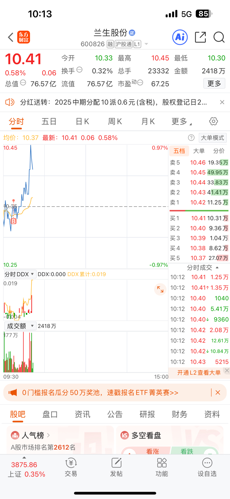 $兰生股份(SH600826)$ 全仓大胆激进一支,看看7天假期期间会不会有惊喜#强势机会# #实盘记录#