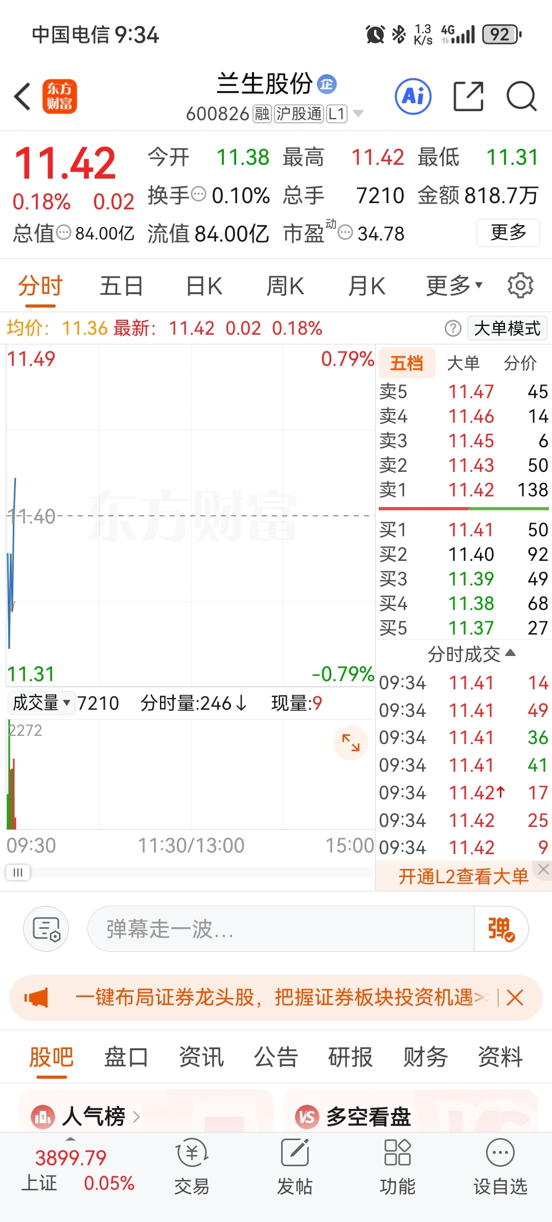 $兰生股份(SH600826)$ 惊天大消息,不得了,不得了,怒涨1分钱,买到就是赚到。