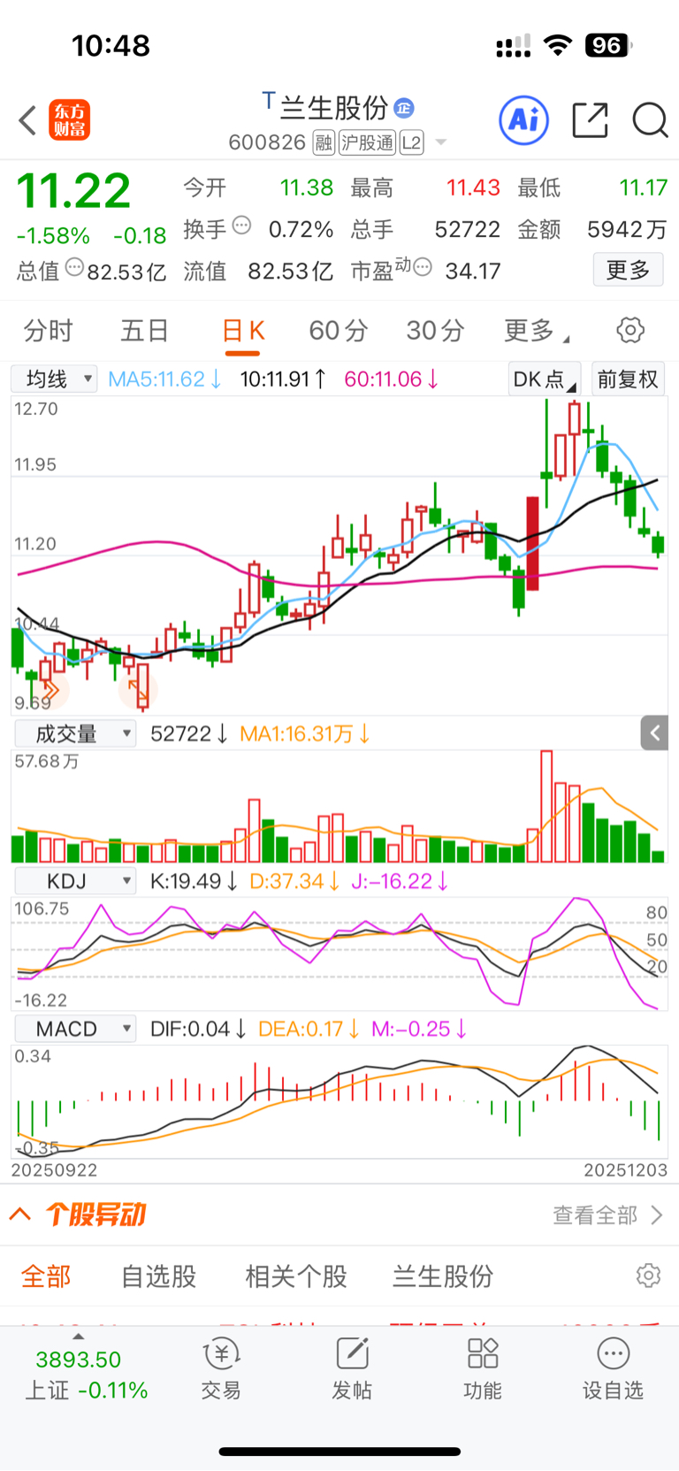 $兰生股份(SH600826)$ 拉一个涨停就开始A杀,快跌停吧,好加仓