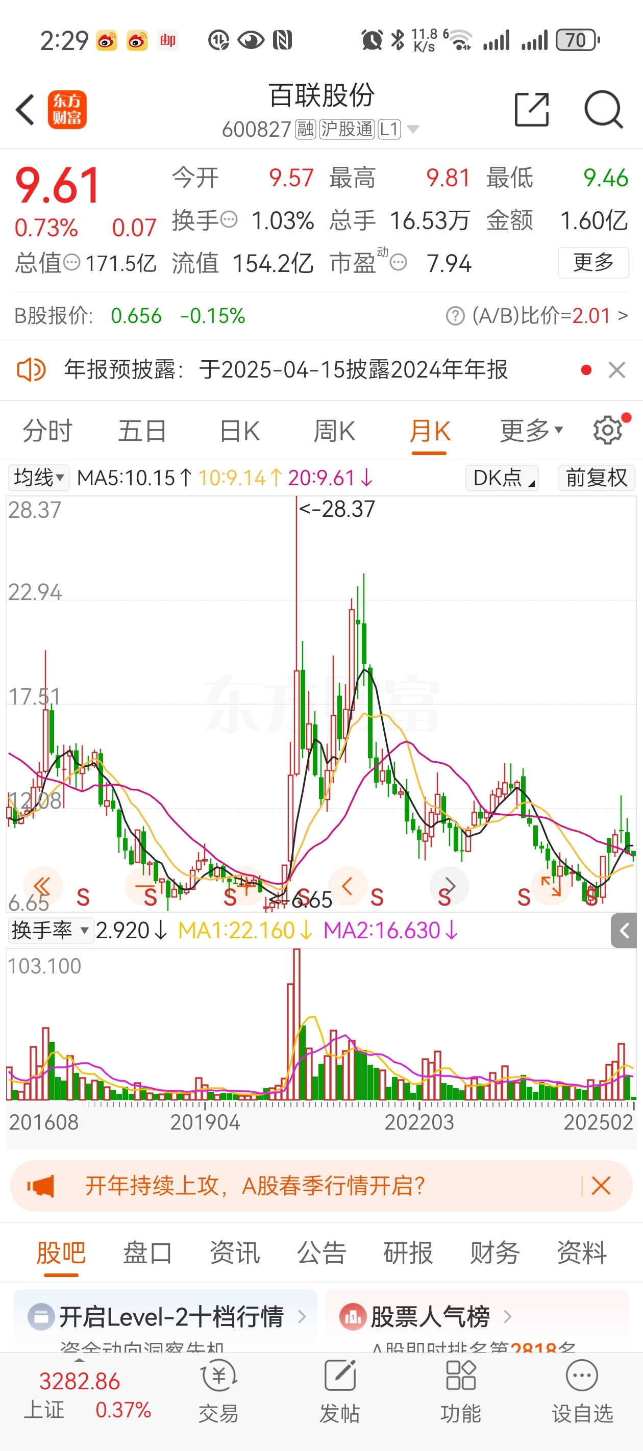 $百联股份(SH600827)$ 长毛说不着急,心急吃不了热豆腐,5年了就是涨的慢一点…14-11倒金字塔建仓的霉气王又赢了还要申请非遗。还有那无数个销号的弟子,这股吧太精彩了,这五年的月线大家要倒过来欣赏