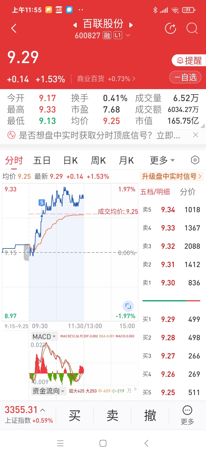 $百联股份(SH600827)$ 昨天买,今日卖,赚点小钱。跌到9,2再买回来。目前来看你是最安全的。