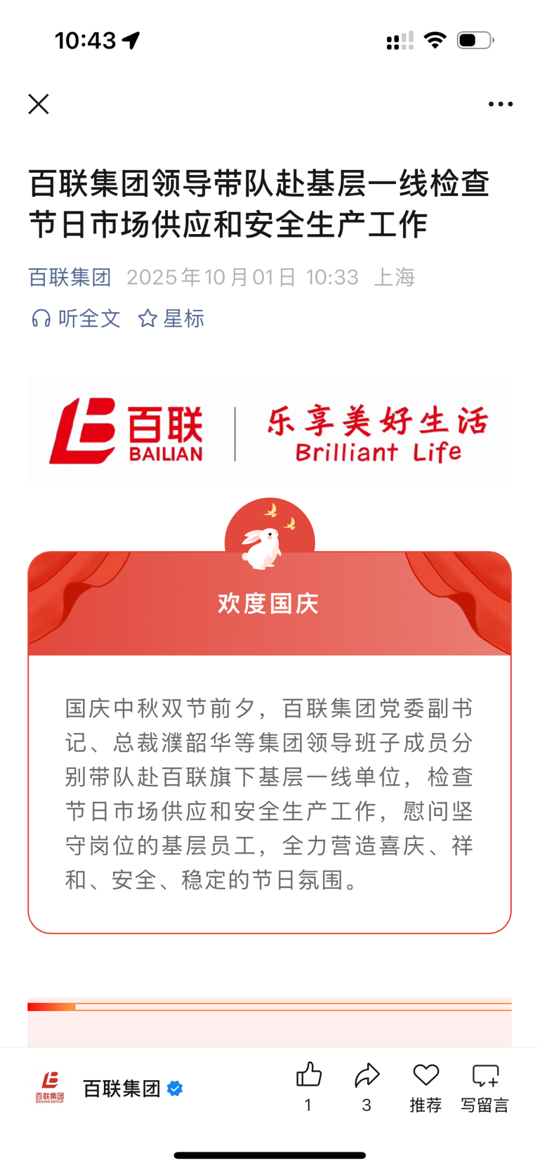 $百联股份(SH600827)$ 国庆快乐呀领导们股东们
