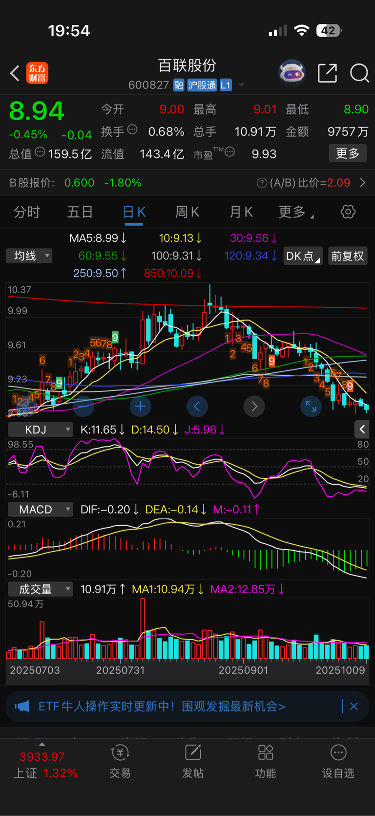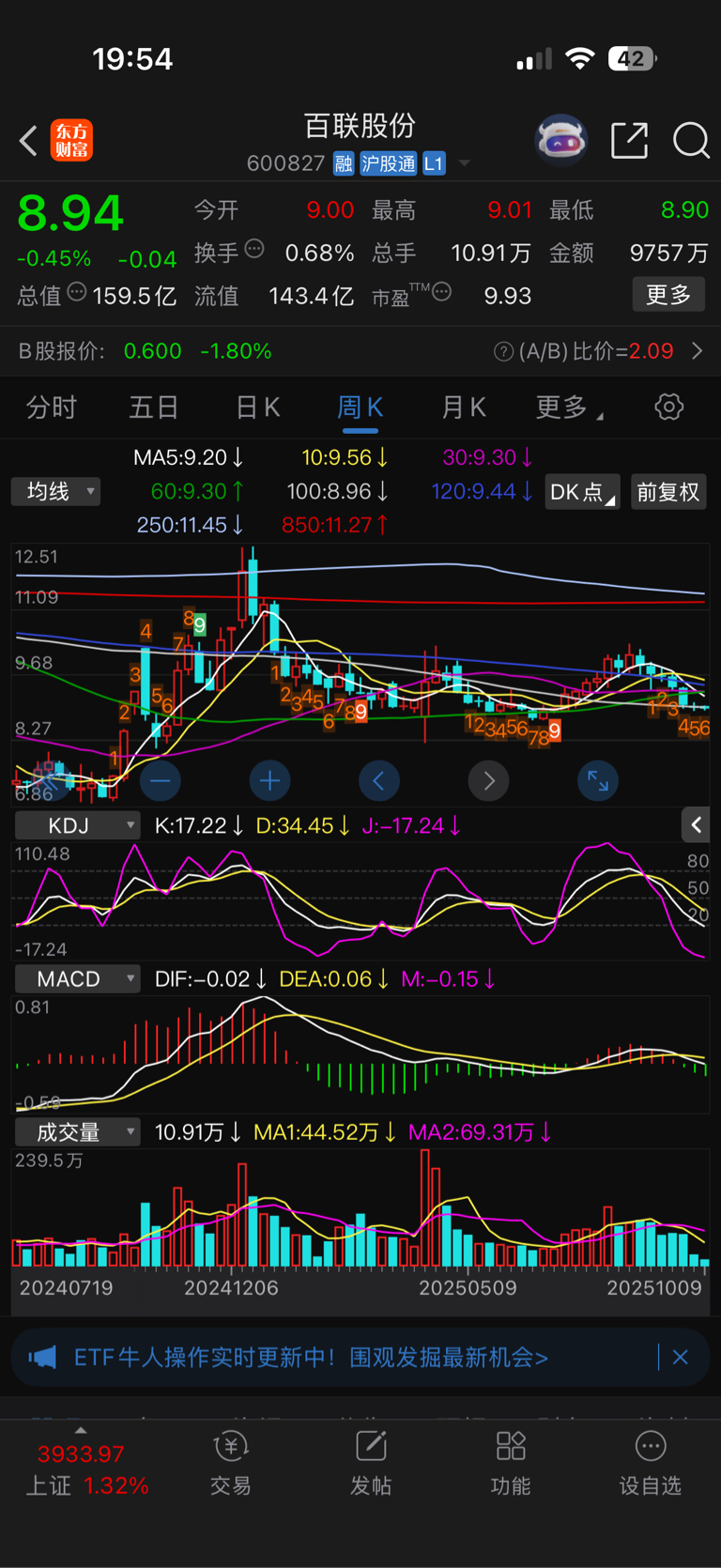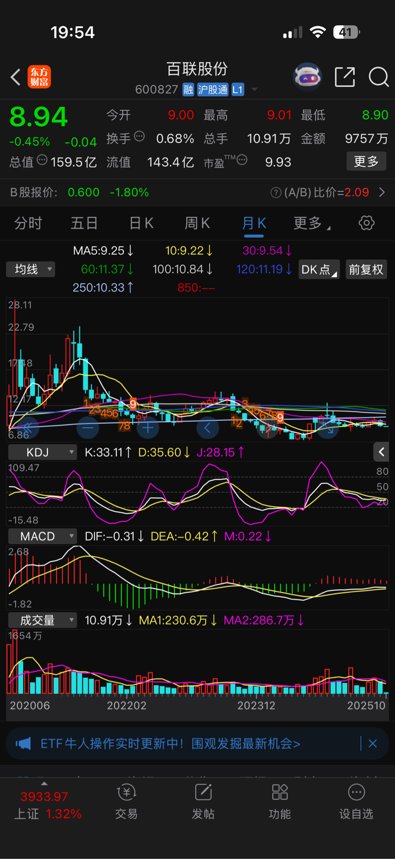 百联这2年业绩也不差,怎么做到日线周线月线均线全部跌破的?(大盘更不差)主力这都