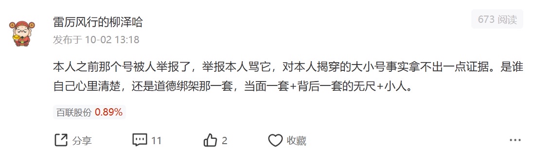 换了个新手机,原来的号忘了账号了,重新注册了一个。名字还叫牛小二。以免技师们说我$百联股份(SH600827)$换了个新手机,原来的号忘了账号了,重新注册了一个。名字还叫牛小二。以免技师们说我跑路了。留个证据,别到时候说我新注册的小号是托忽悠人。这种事他们几个没少干,胡搅蛮缠2025-07-07 08:38:25 来自:百联股份吧