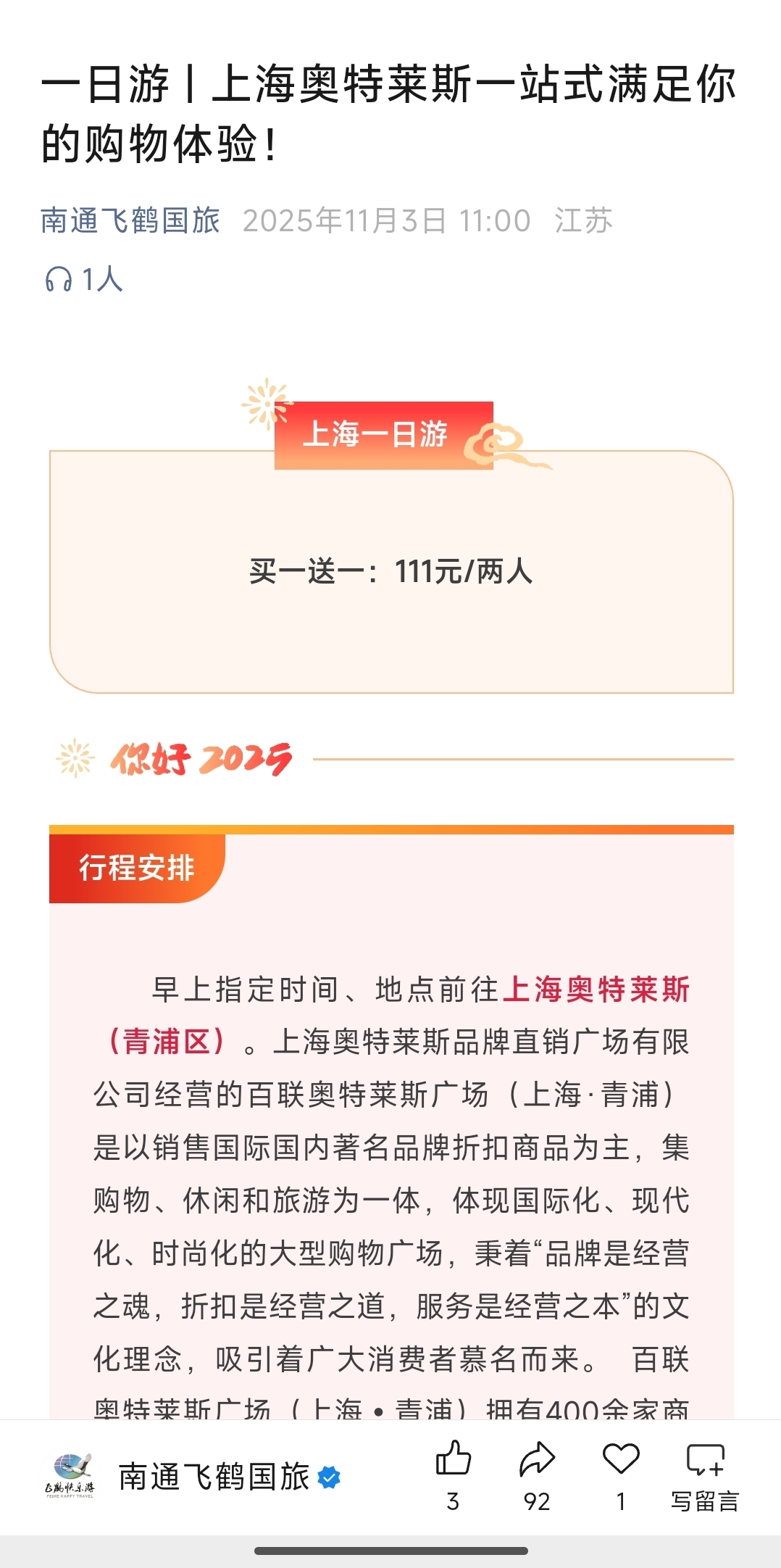 $百联股份(SH600827)$ 什么叫利好,给你们看个图片,刚刷到。定制青浦百联奥莱购物专线。
