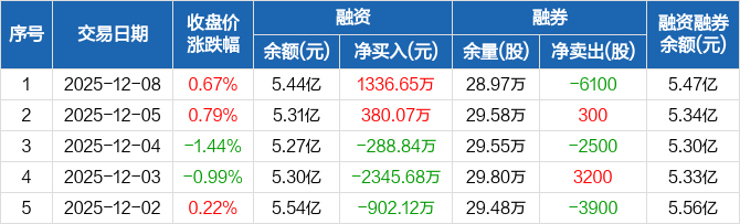 百联股份:融资净买入1336.65万元,融资余额5.44亿元(12-08)