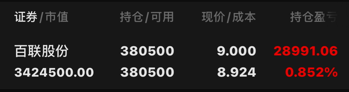 $百联股份(SH600827)$ 上周我赚10万都没动,现在才赚这么点,我肯定不会走的。最起码让我挣30个,我才考滤走