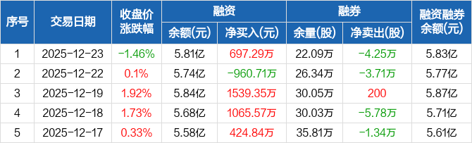百联股份:融资净买入697.29万元,融资余额5.81亿元(12-23)