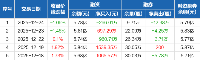 百联股份:融资净偿还266.01万元,融资余额5.78亿元(12-24)