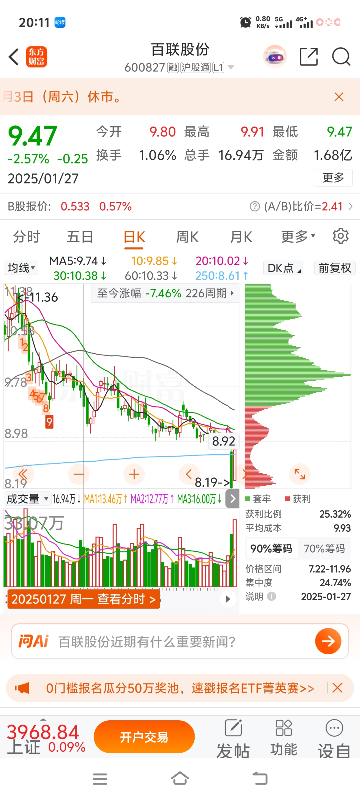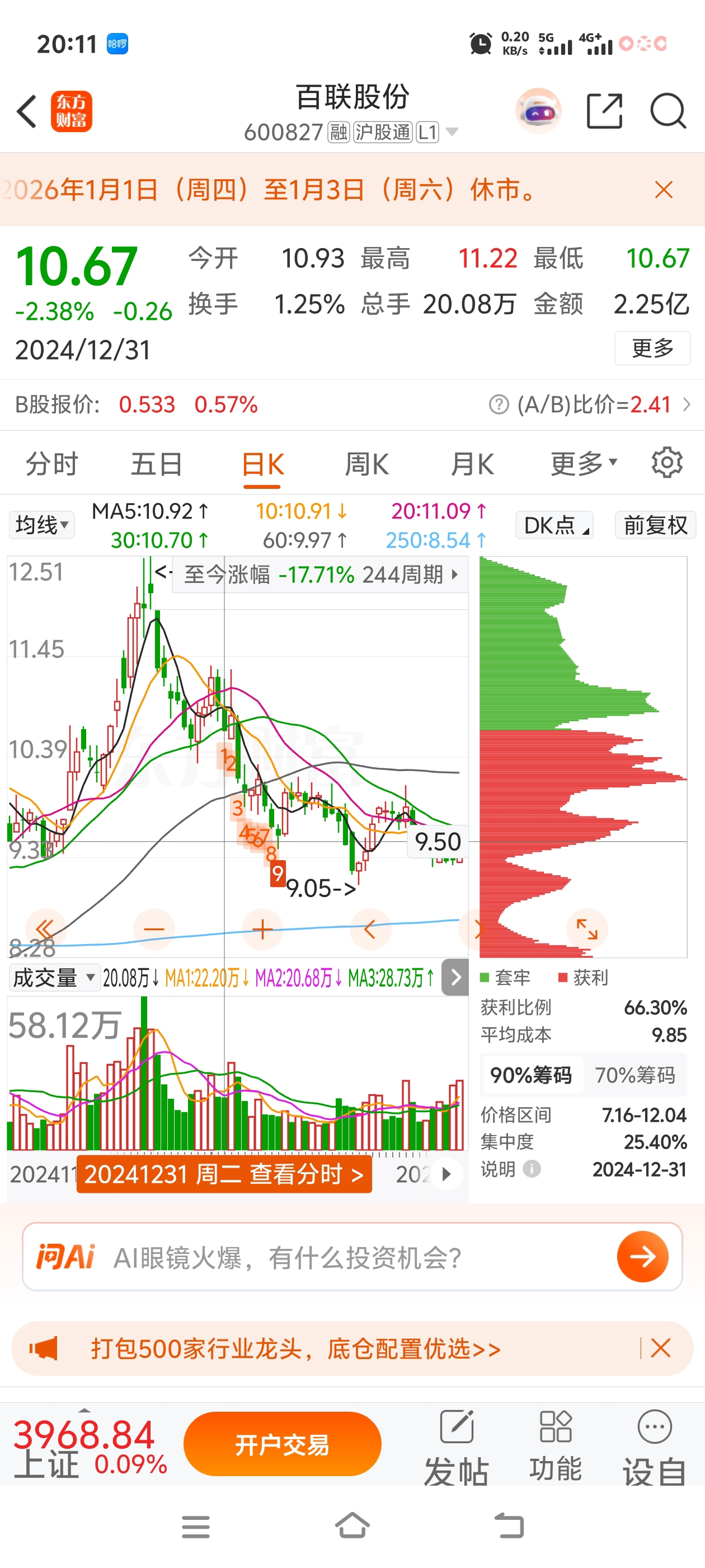 $百联股份(SH600827)$ 不仅四年没涨停,不跟大盘,板块上涨,一年跌十几个点。就拿最近一年来说,去年元旦,春节,五一,国庆还有今年元旦前一天没有一次是涨得!黑了心的。市值十年新低,董事长年薪历史新高,还有没有人管