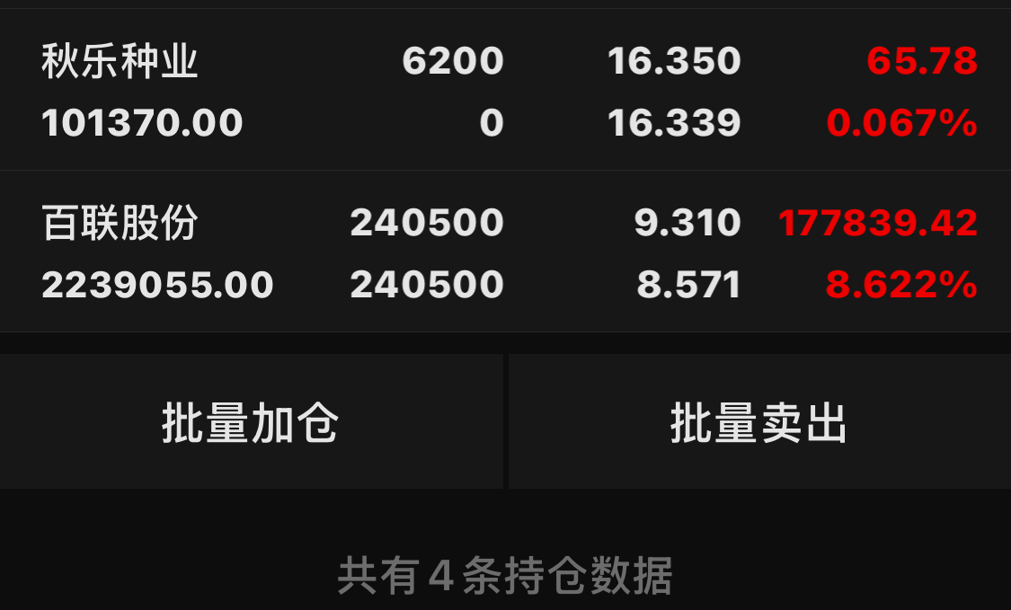 $百联股份(SH600827)$ 我苏州托又减至底仓了。操作两个月,平均每个月挣四个多点,还行!