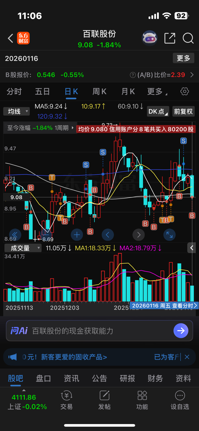 $百联股份(SH600827)$ 我是真的买,是嗷嗷叫