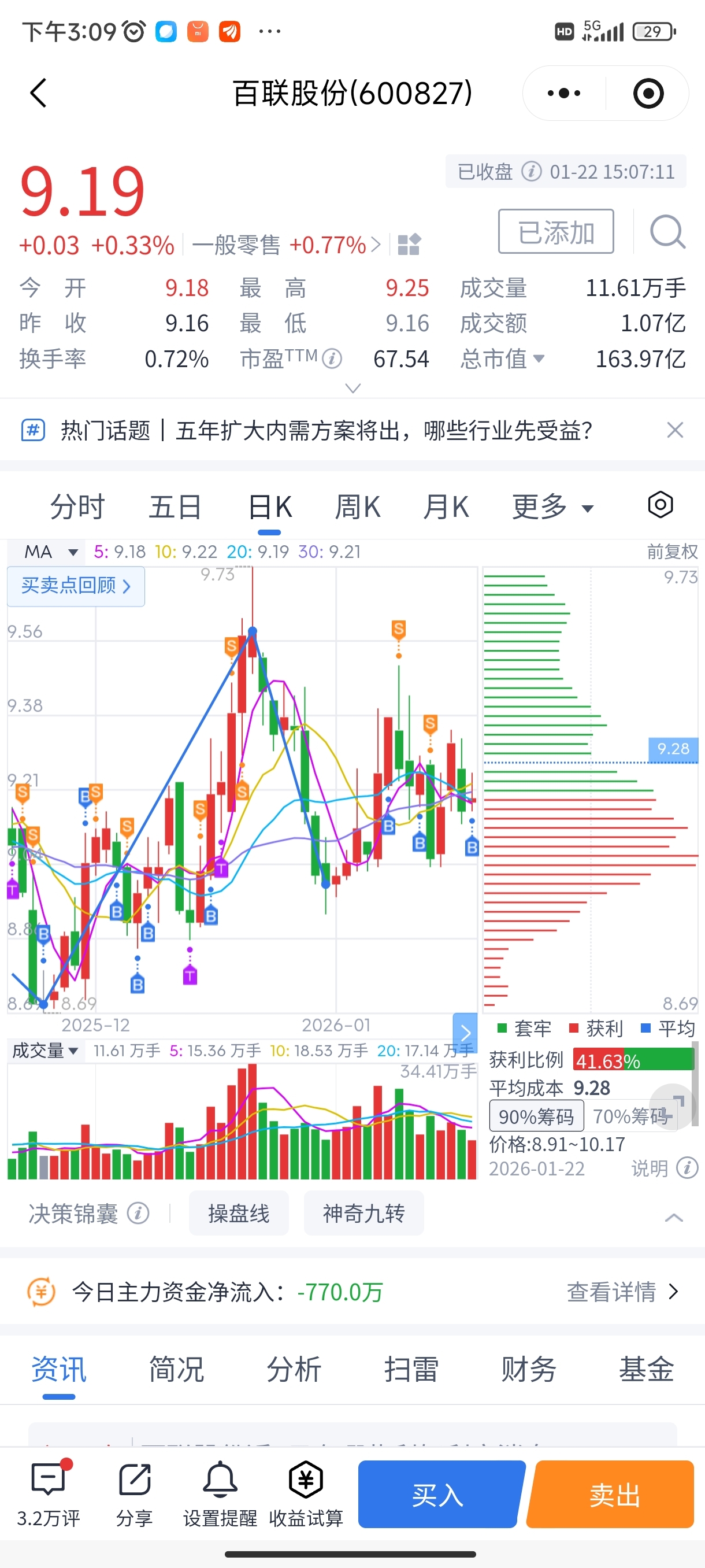 $百联股份(SH600827)$ 918干了,真费劲啊!8开头继续加仓怕个锤子啊!