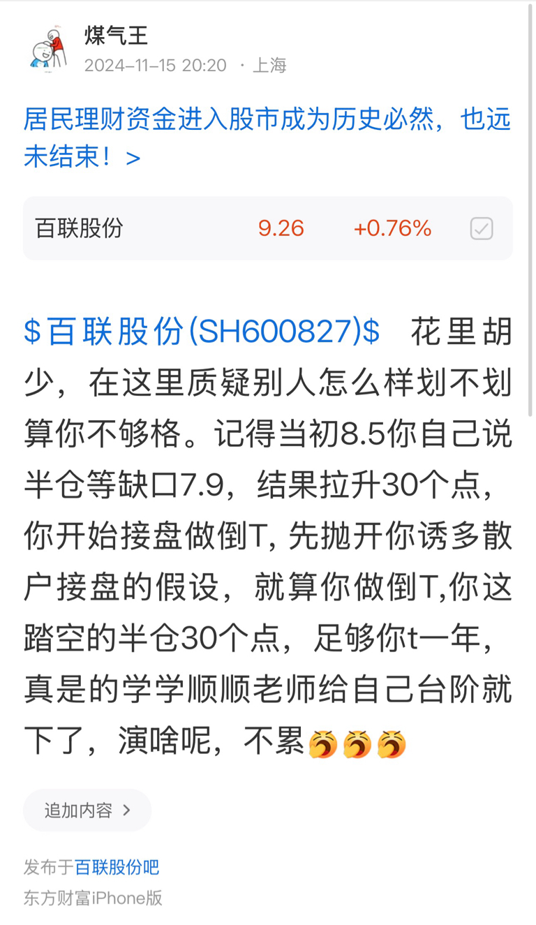 $百联股份(SH600827)$ @牛牛牛小二 你们几个三河都是一个怂样,除了用嘴骗没别的本事,没出息