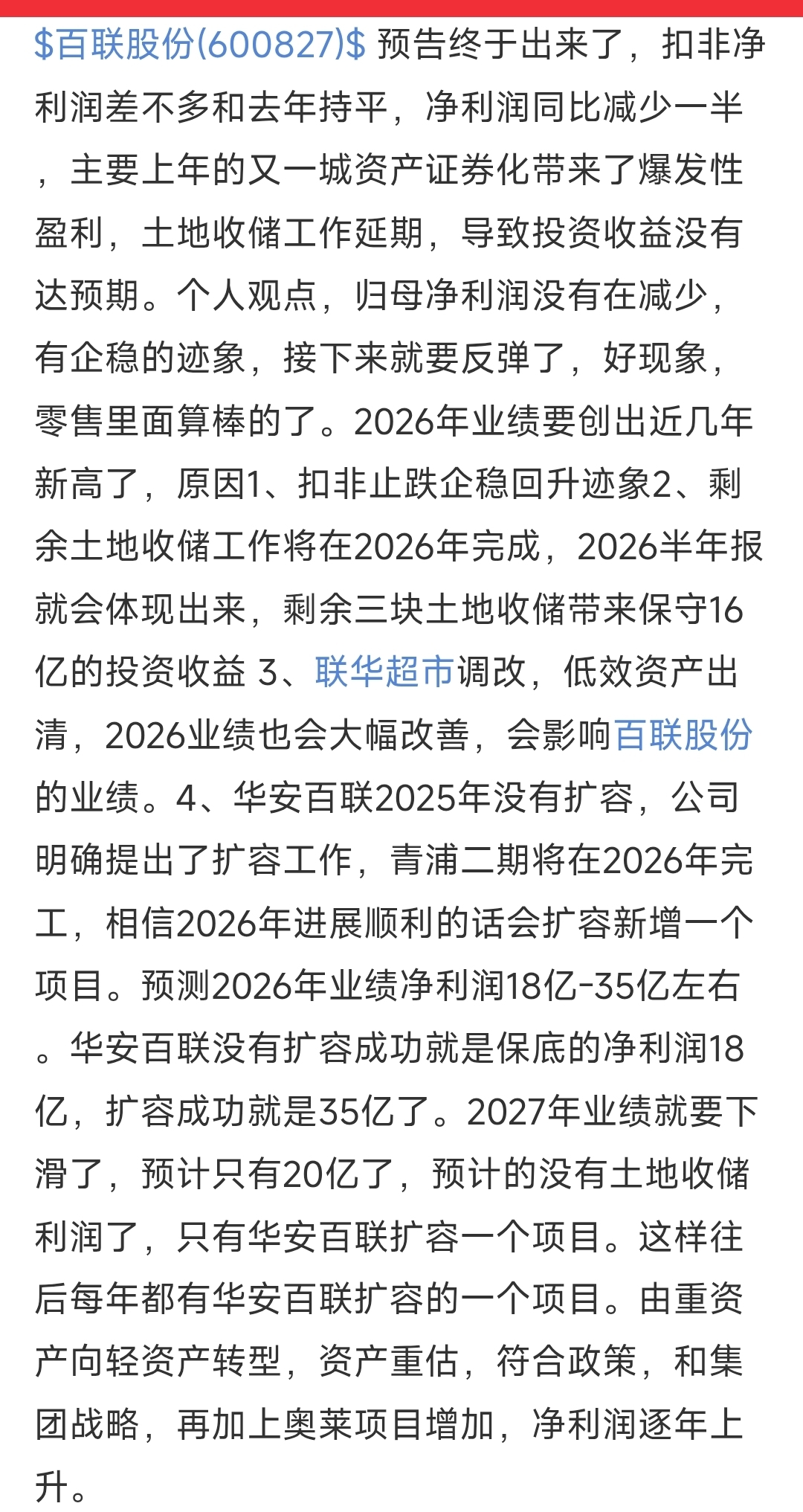 $百联股份(SH600827)$ 看到一个人分析的百联业绩,大家说说看,他说的对嘛?