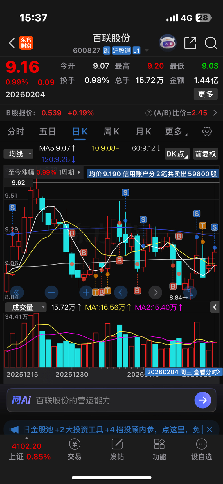 $百联股份(SH600827)$ 叫嚣要吃掉我的筹码,我盘中疯狂艾特他告诉他我挂9.19,我以为他真有这个实力呢,谁知道是来搞笑的,我挂9.19只成交了几十个W,也不知道是不是他买的,天天就装就吹,一点实力没有@柏连夜叔