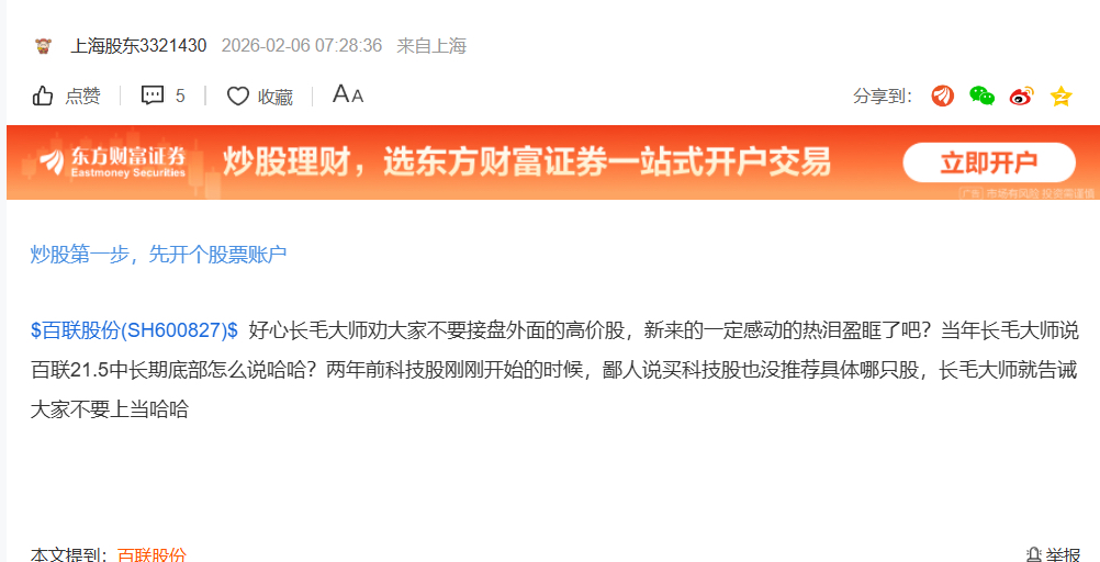 温馨提示: 1.根据《证券法》规定,禁止编造、传播虚假信息或者误导性信息,扰乱证券市场;2.用户在本社区发表的所有资料、言论等仅代表个人观点,与本网站立场无关,不对您构成任何投资建议。用户应基于自己的独立判断,自行决定证券投资并承担相应风险。《东方财富社区管理规定》