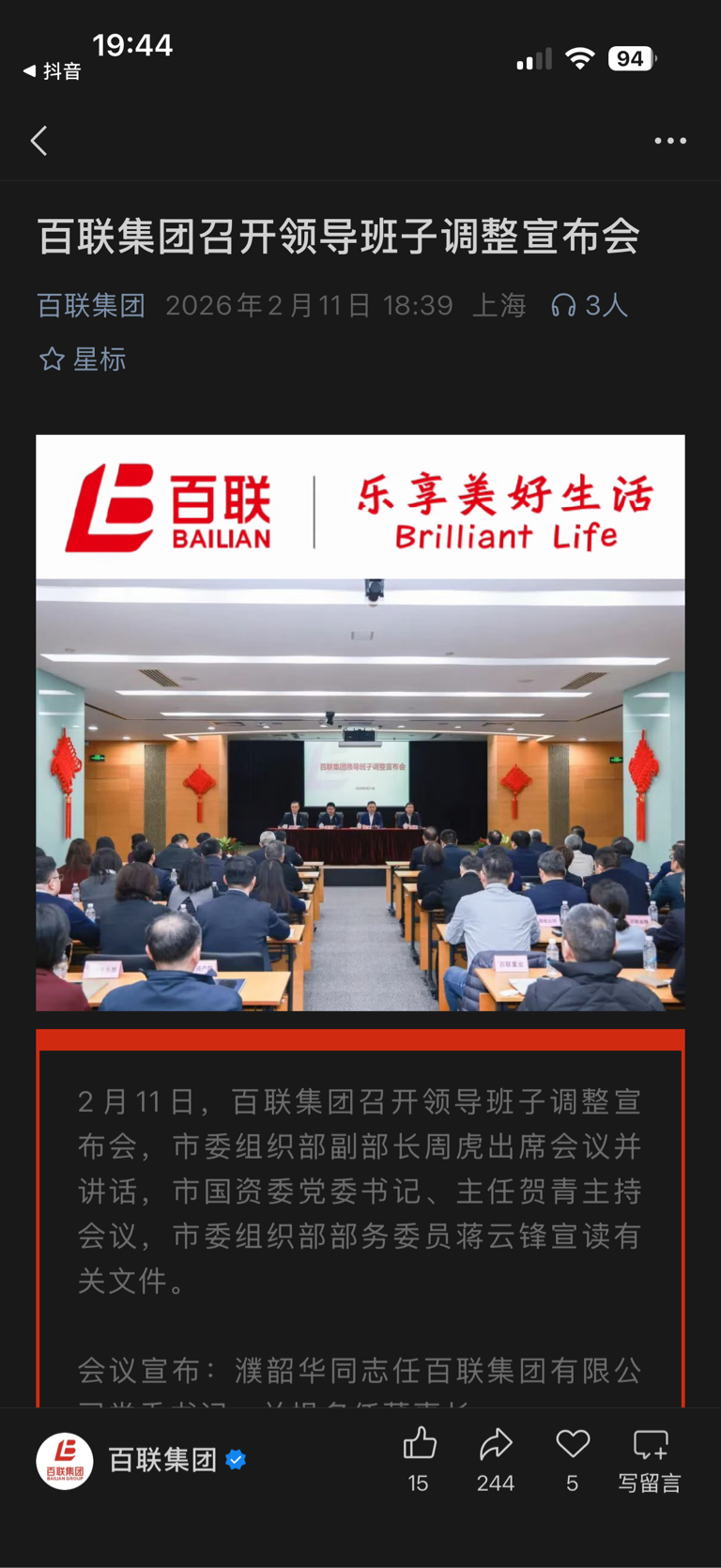 $百联股份(SH600827)$ 公司大动作