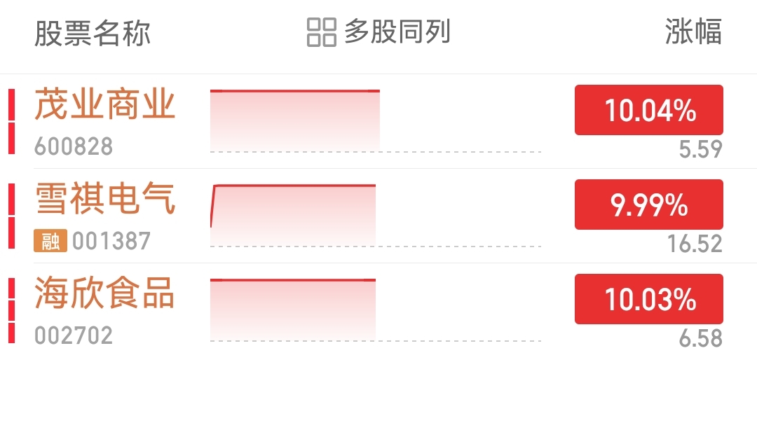 $茂业商业(SH600828)$ $海欣食品(SZ002702)$ 六大门派讲故事都可以可以,茂业老板好有米,海欣昨天午后弱转强,今天强上强$雪祺电气(SZ001387)$ 炒家电买雪糕啰