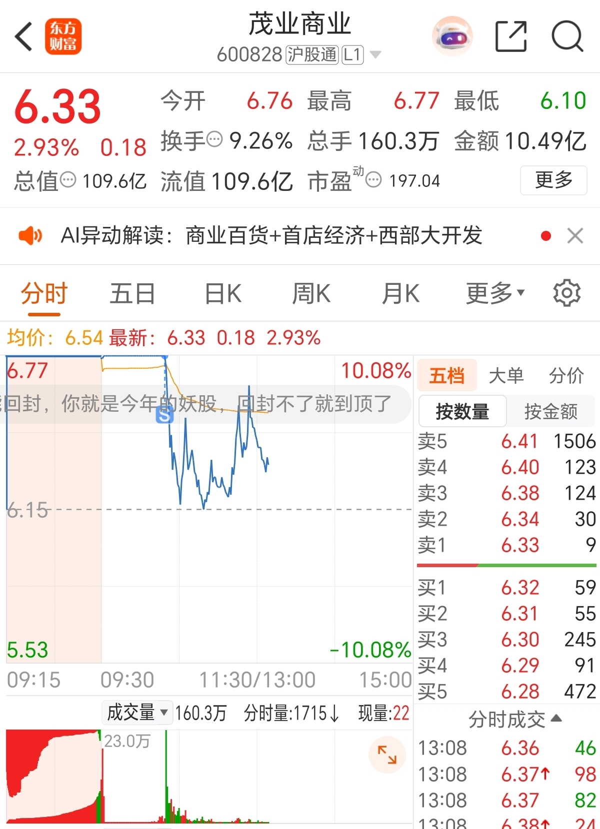 $茂业商业(SH600828)$ s德韭菜还在幻想回封,风险大于机会跑