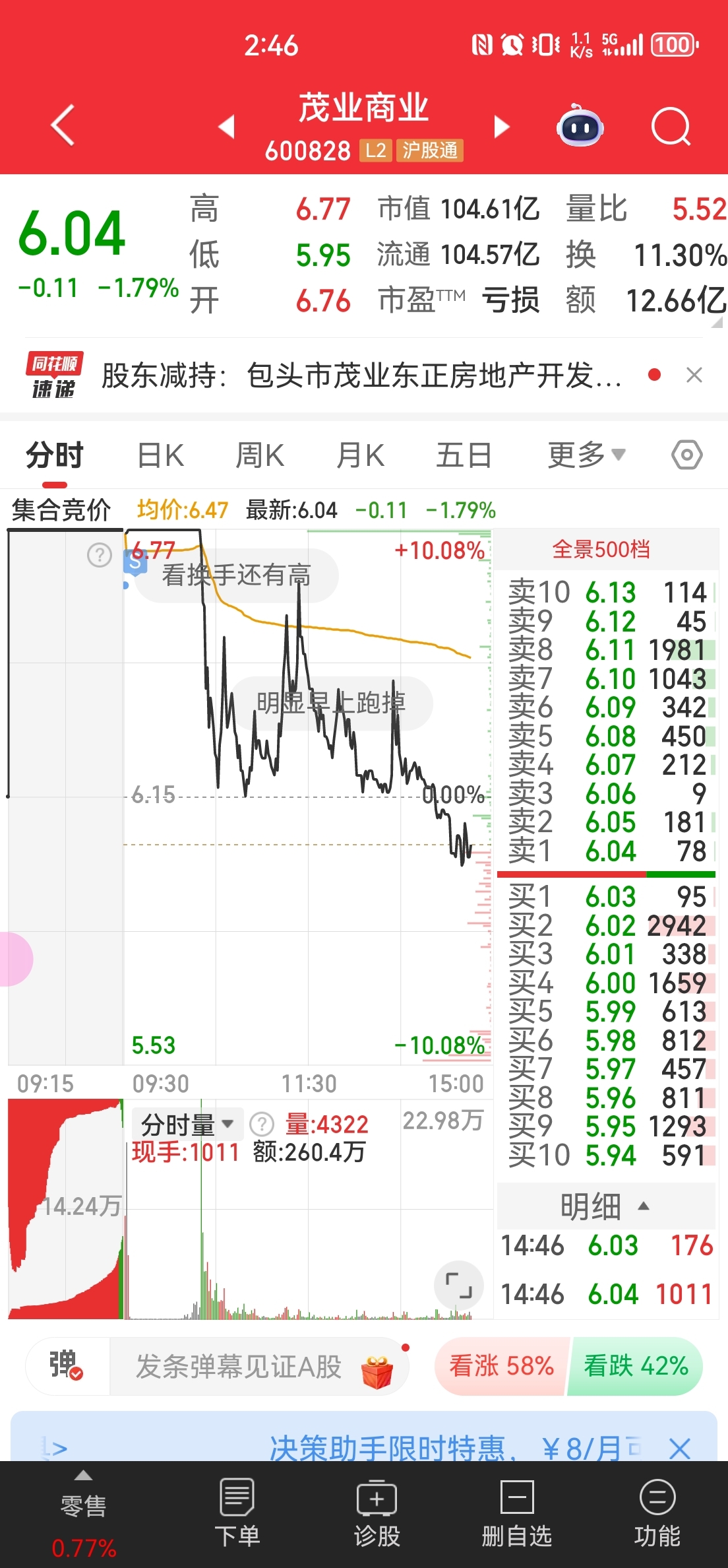 $茂业商业(SH600828)$ 为天量换手做出一点贡献