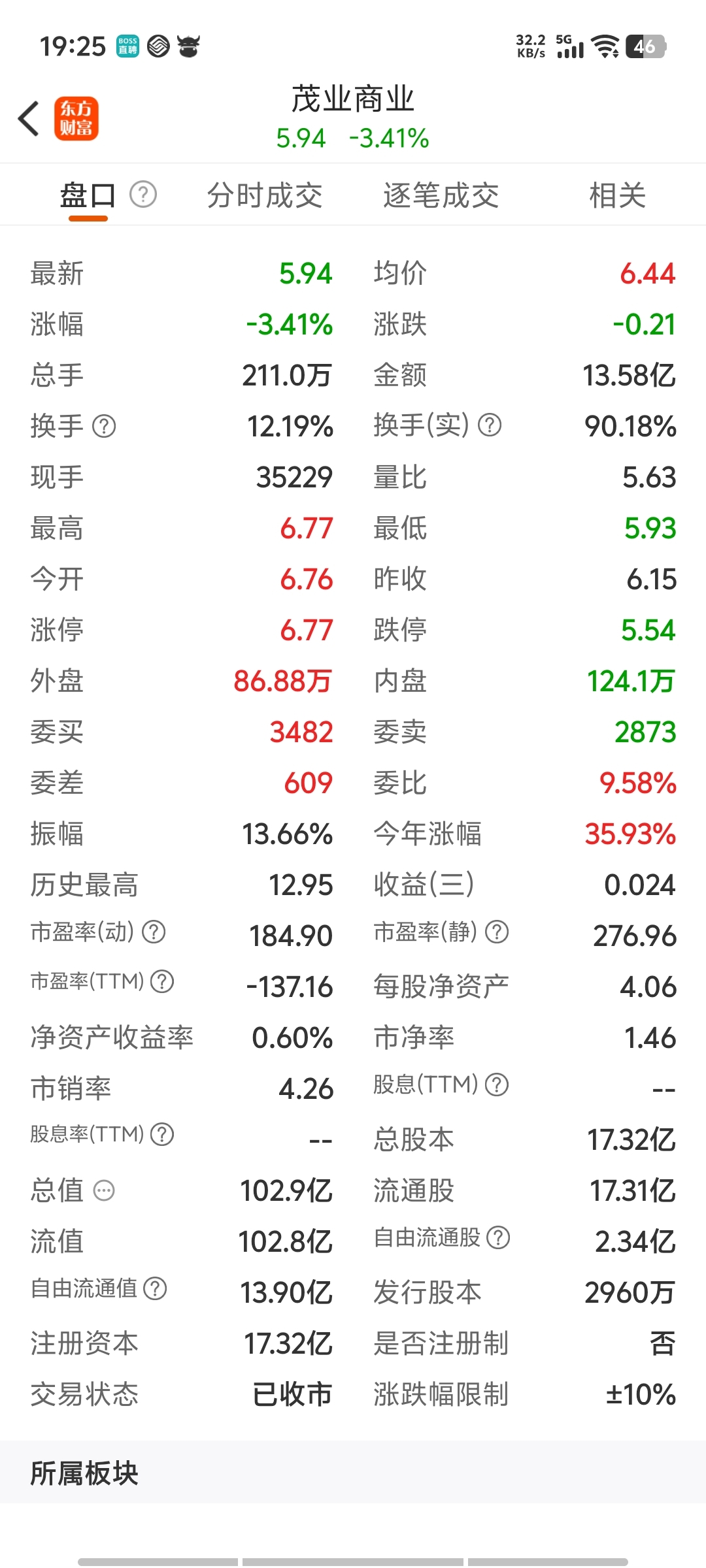 $茂业商业(SH600828)$ 牛逼,上午看了一下都好好的,没想到炸成这样。最牛逼的是实际换手超过90%,太猛了。