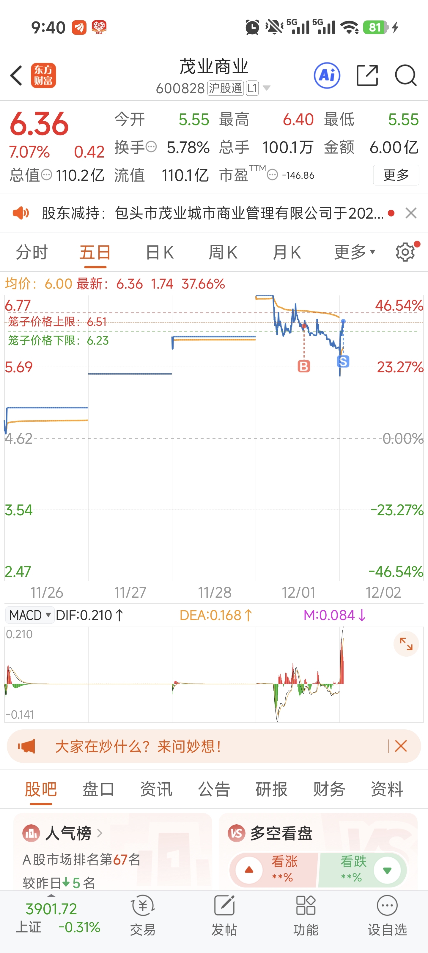 $茂业商业(SH600828)$ 再也不追高了,太恐怖了!