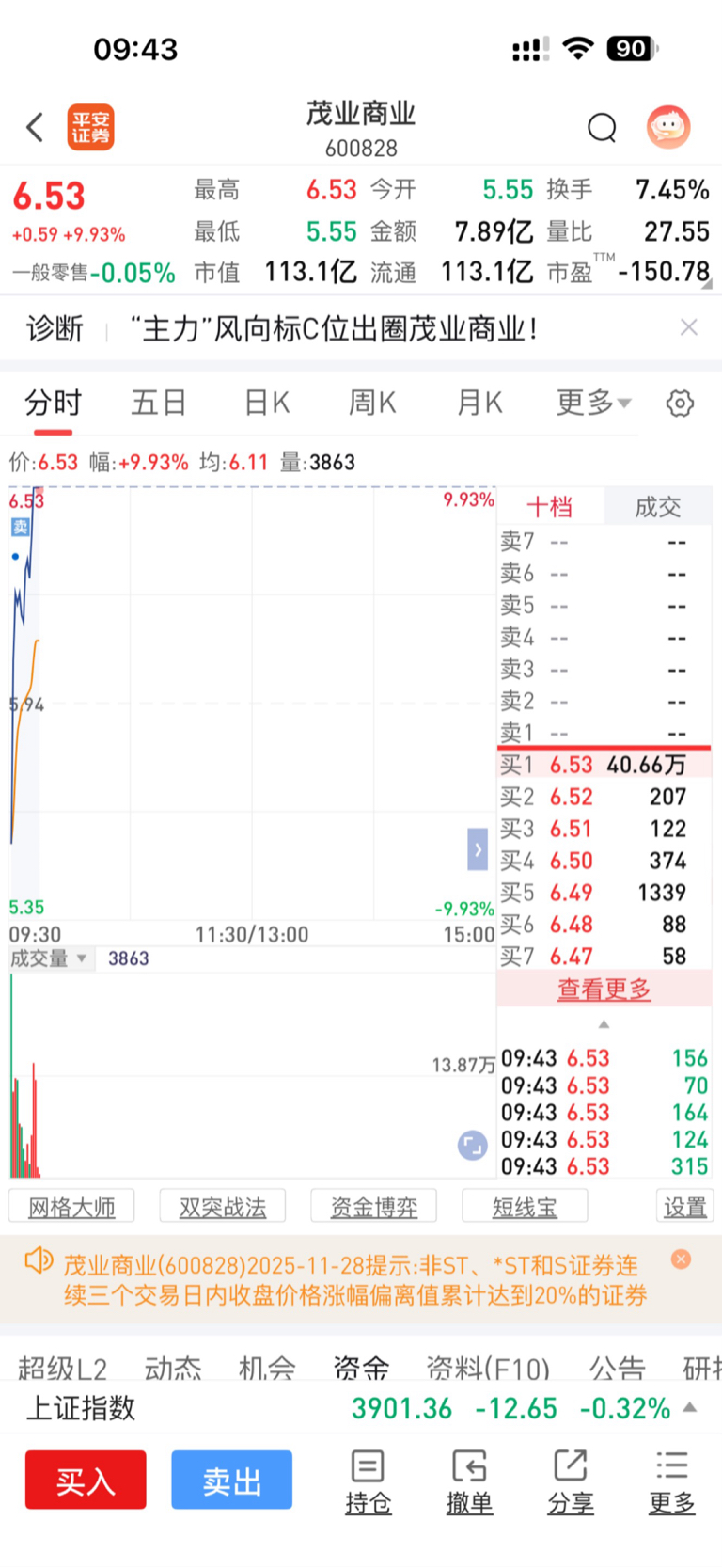 $茂业商业(SH600828)$ 昨日尾盘买入 今天7个点套利走人。这种明目张胆减持套现的公司 以后不敢碰了!