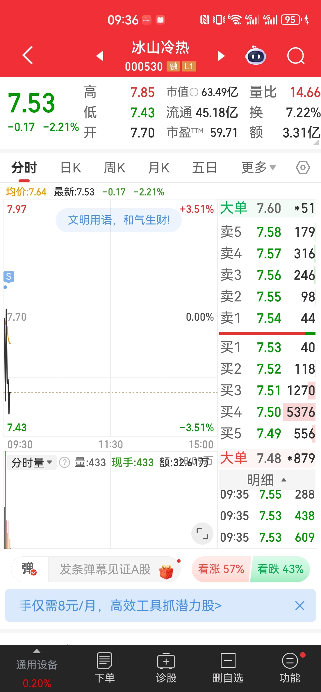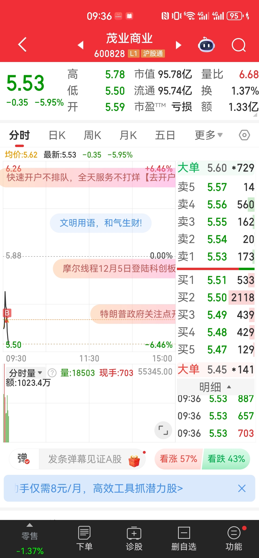 $茂业商业(SH600828)$ 一万到一百万第33天,冰山红盘走了,-4.5买了茂业