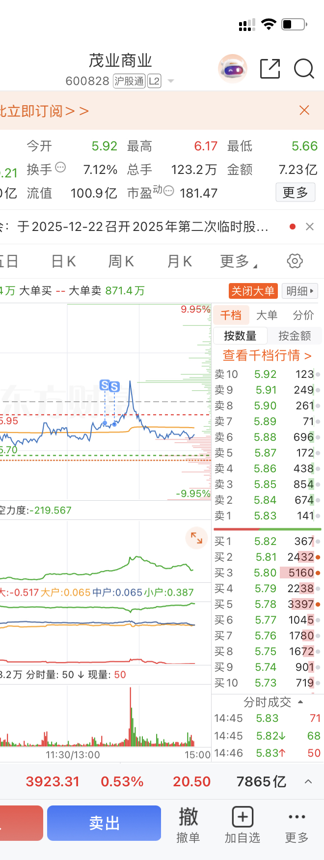 $茂业商业(SH600828)$ 老帽的主力,你可以涨停了,我拜拜了
