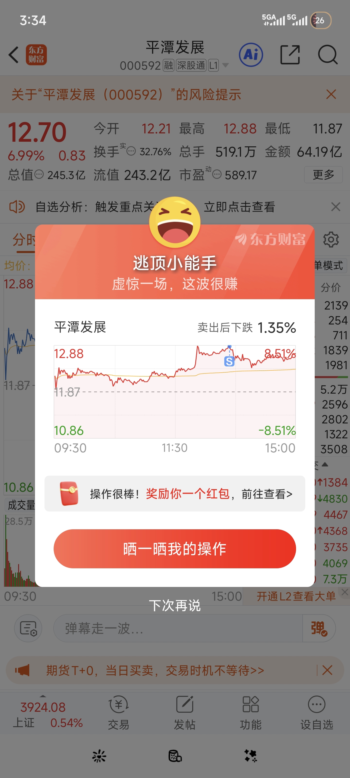 二波正式开始,昨天挣8个点卖掉平潭,尾盘进了你,正确的选择