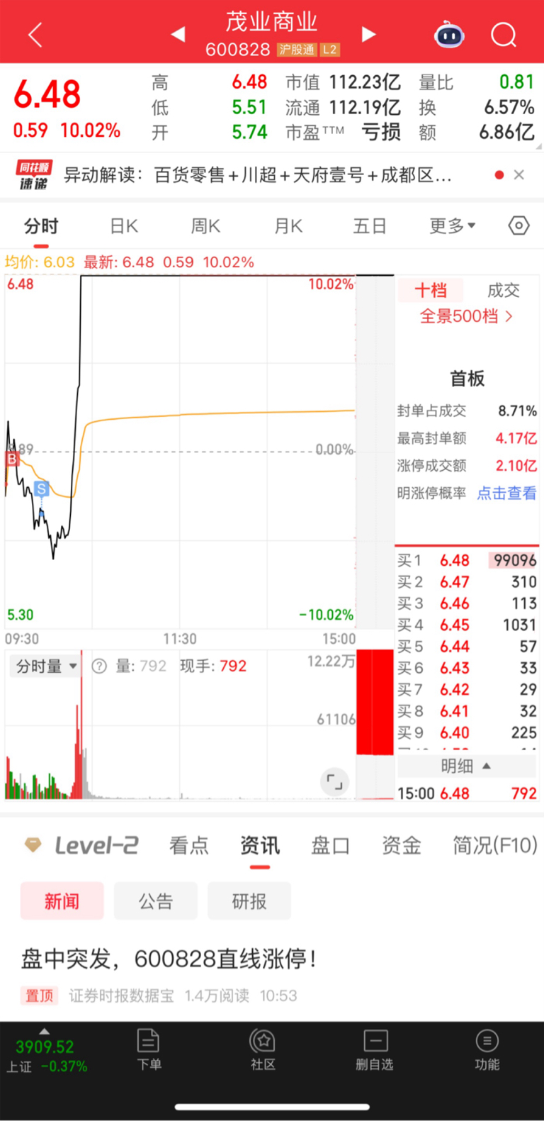 $茂业商业(SH600828)$ 昨天尾盘潜伏消费 今天看见东百 一字 果断加仓茂业 结果走的不急预期 ,想着把底仓T出来 刚出来10分钟就涨停了 恶心啊