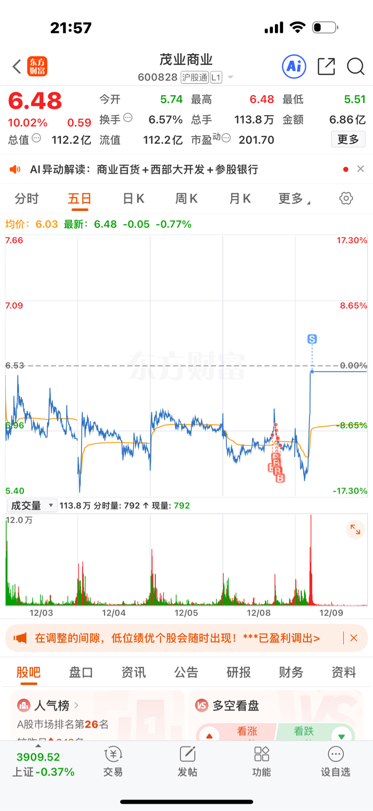 温馨提示: 1.根据《证券法》规定,禁止编造、传播虚假信息或者误导性信息,扰乱证券市场;2.用户在本社区发表的所有资料、言论等仅代表个人观点,与本网站立场无关,不对您构成任何投资建议。用户应基于自己的独立判断,自行决定证券投资并承担相应风险。《东方财富社区管理规定》