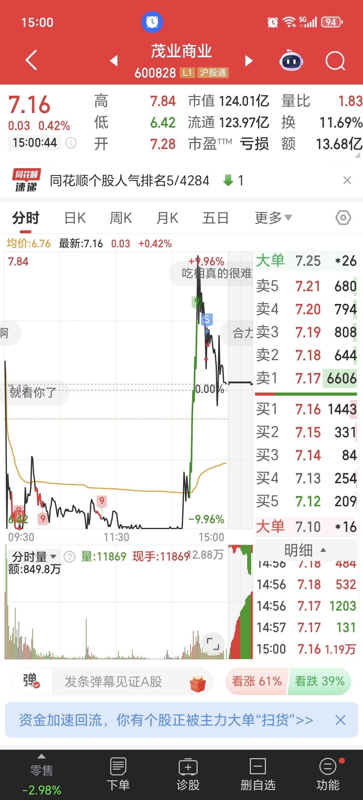 $茂业商业(SH600828)$ t了十几个点 舒服