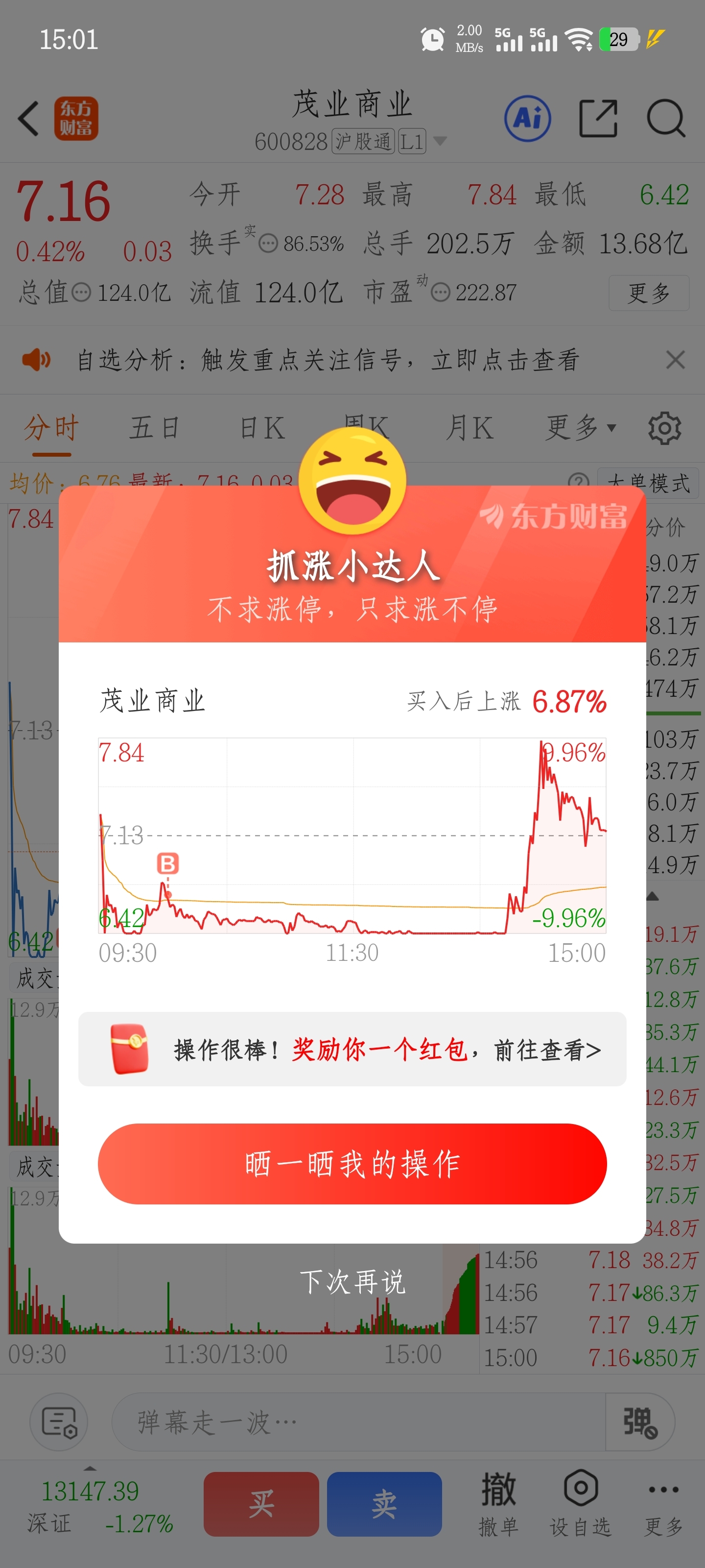 $茂业商业(SH600828)$ 牛逼的直转圈