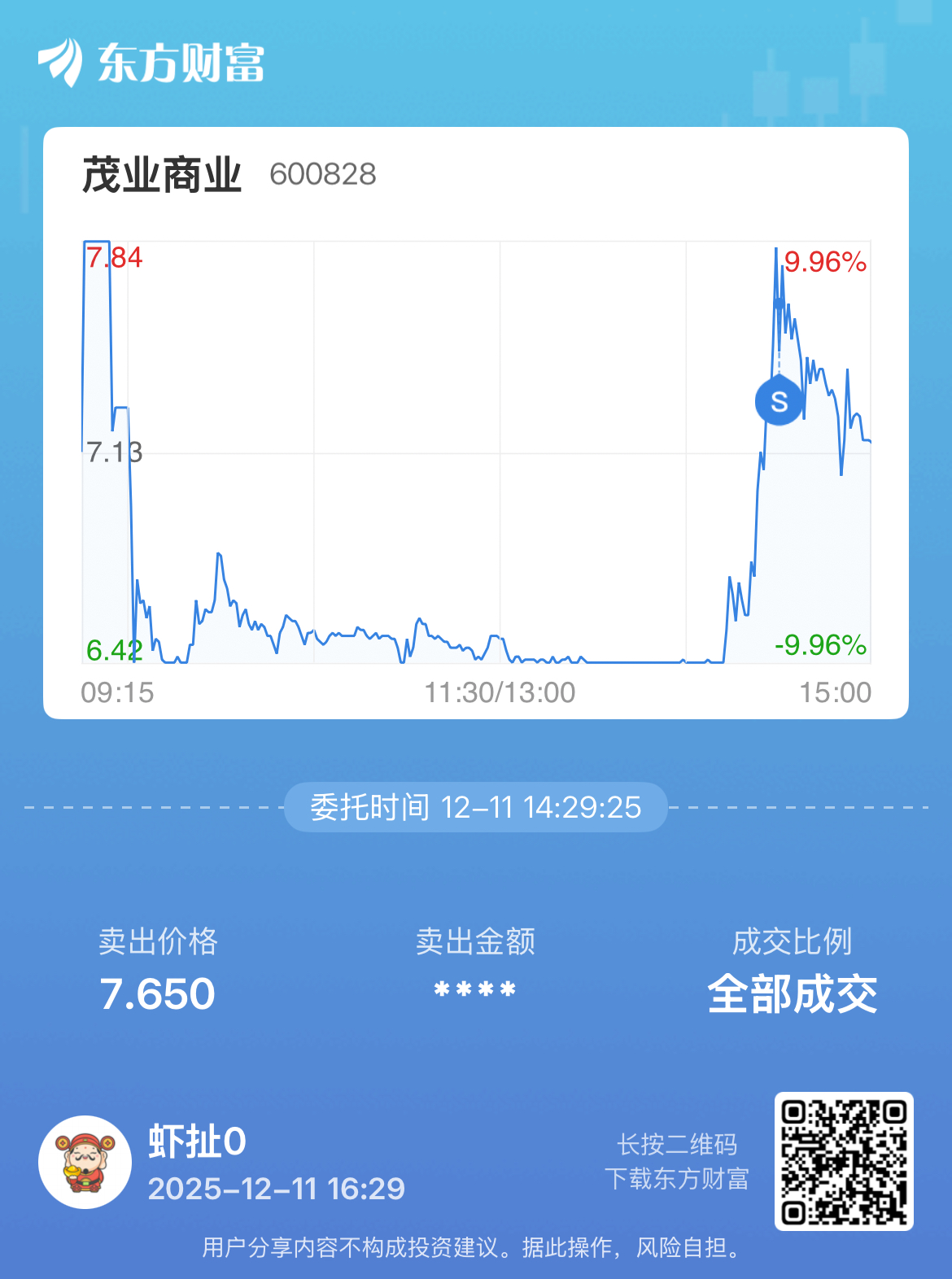 温馨提示: 1.根据《证券法》规定,禁止编造、传播虚假信息或者误导性信息,扰乱证券市场;2.用户在本社区发表的所有资料、言论等仅代表个人观点,与本网站立场无关,不对您构成任何投资建议。用户应基于自己的独立判断,自行决定证券投资并承担相应风险。《东方财富社区管理规定》