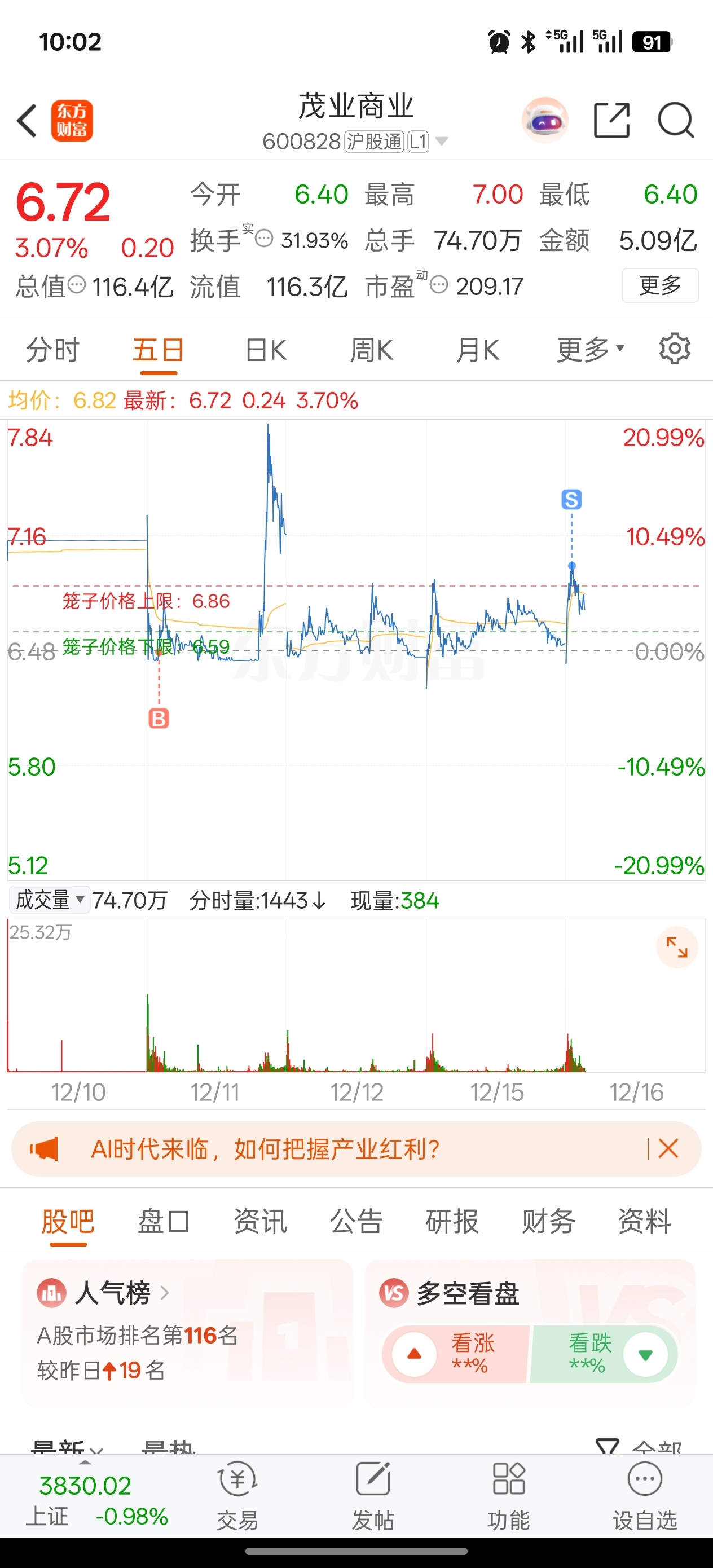 $茂业商业(SH600828)$ 我拿不住了,换中百了