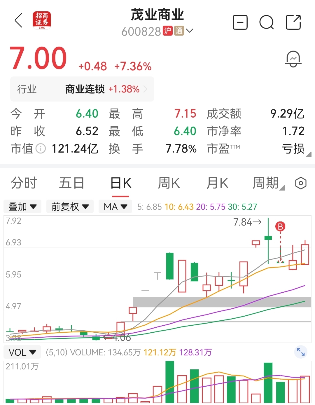 $茂业商业(SH600828)$ 我可是在跌停板支持你