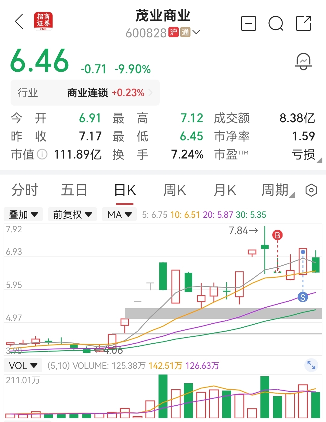 $茂业商业(SH600828)$ 买在跌停板