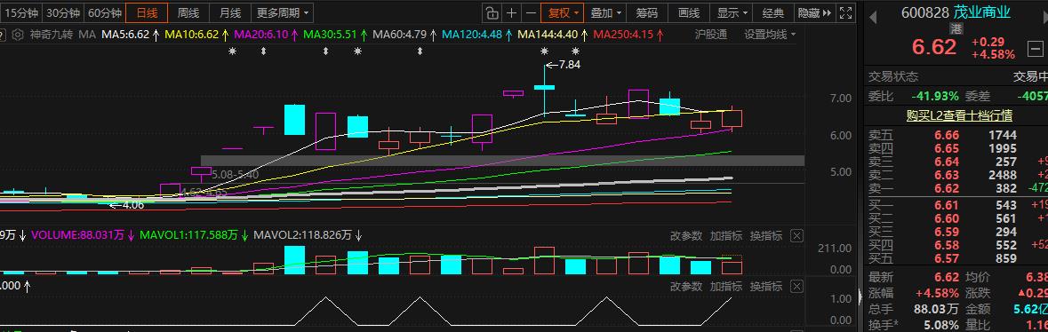 茂业商业下午低点信号6.49