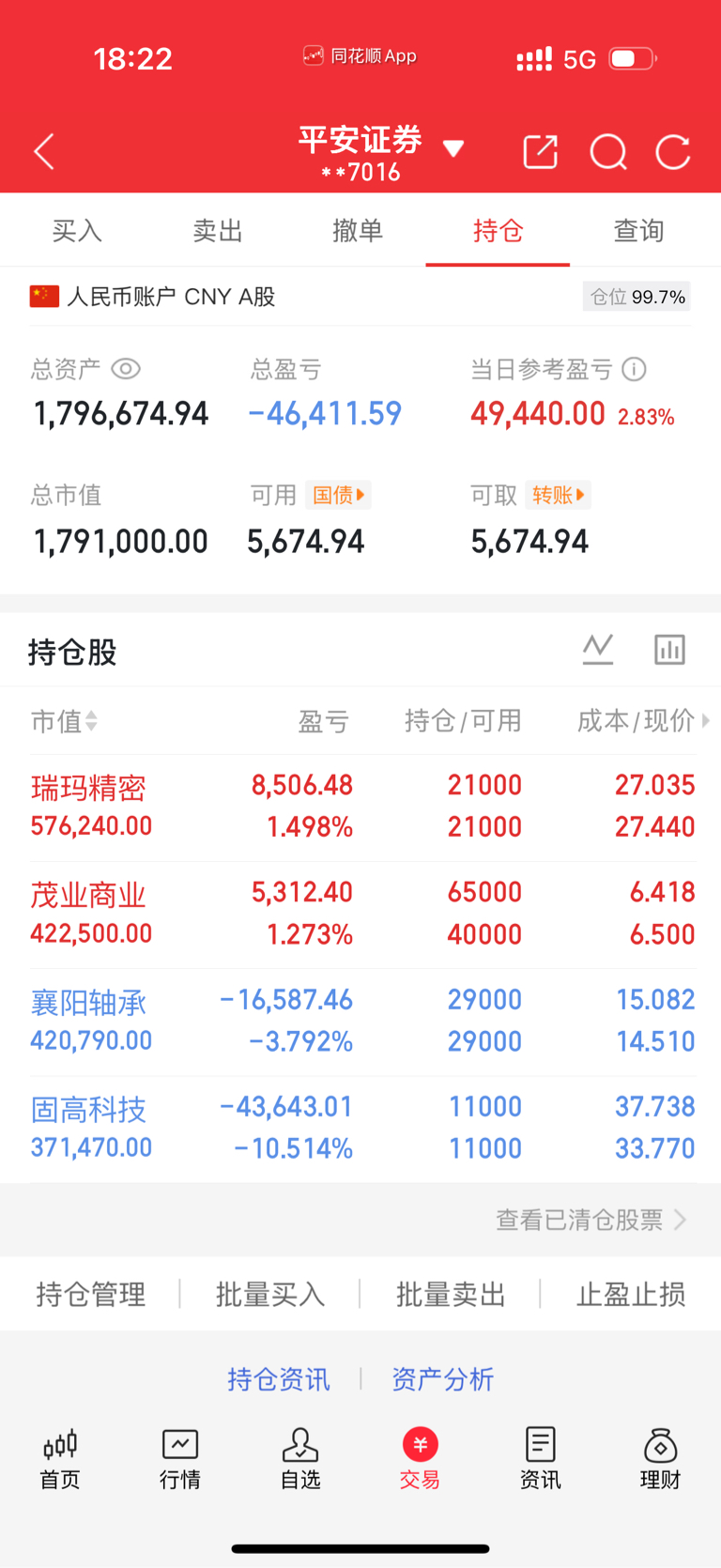 个人记录50万起步(第203天)星期五目前:179+、当日浮动:49440加仓茂