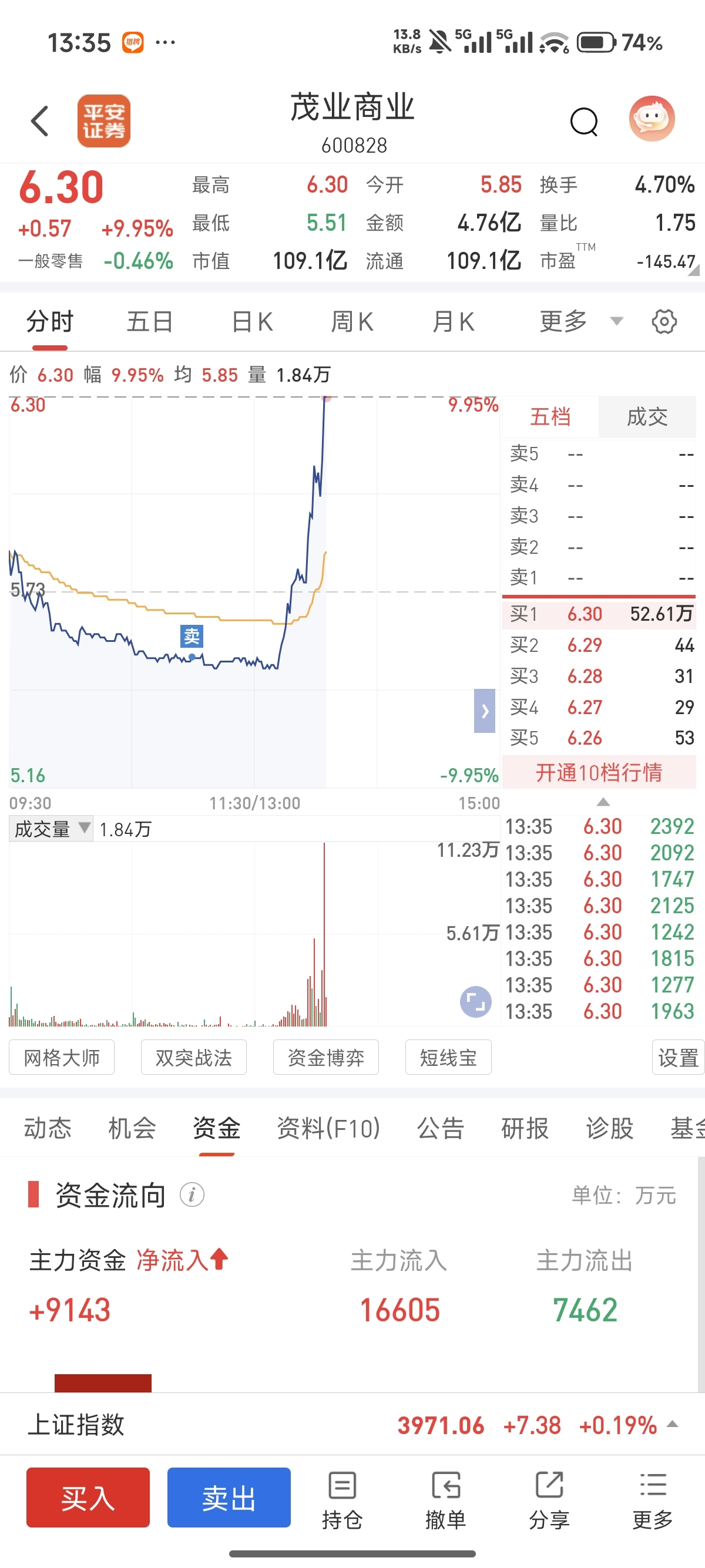 $茂业商业(SH600828)$ 已经不会再爱了。早上最低点割肉,下午直线涨停。我
