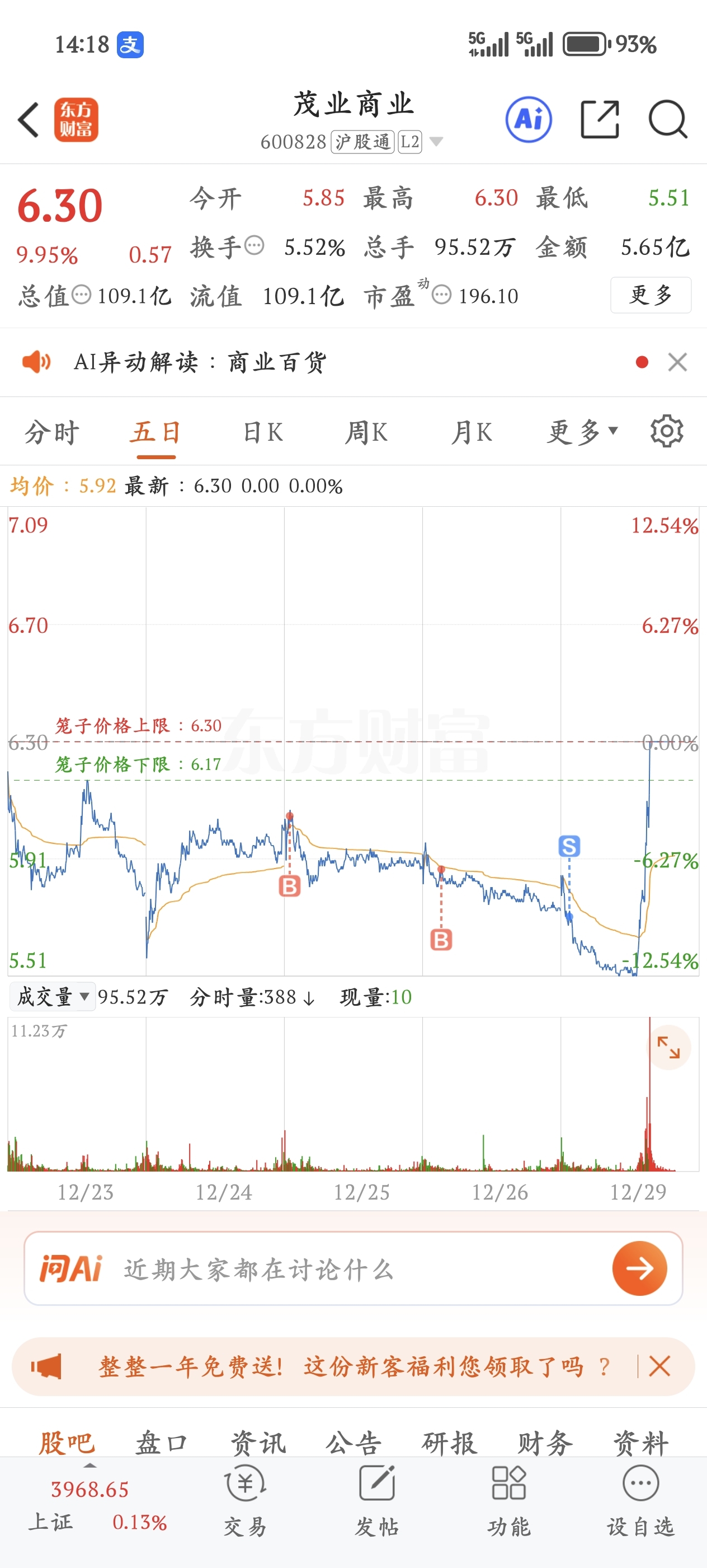 $茂业商业(SH600828)$ 不是,哥们