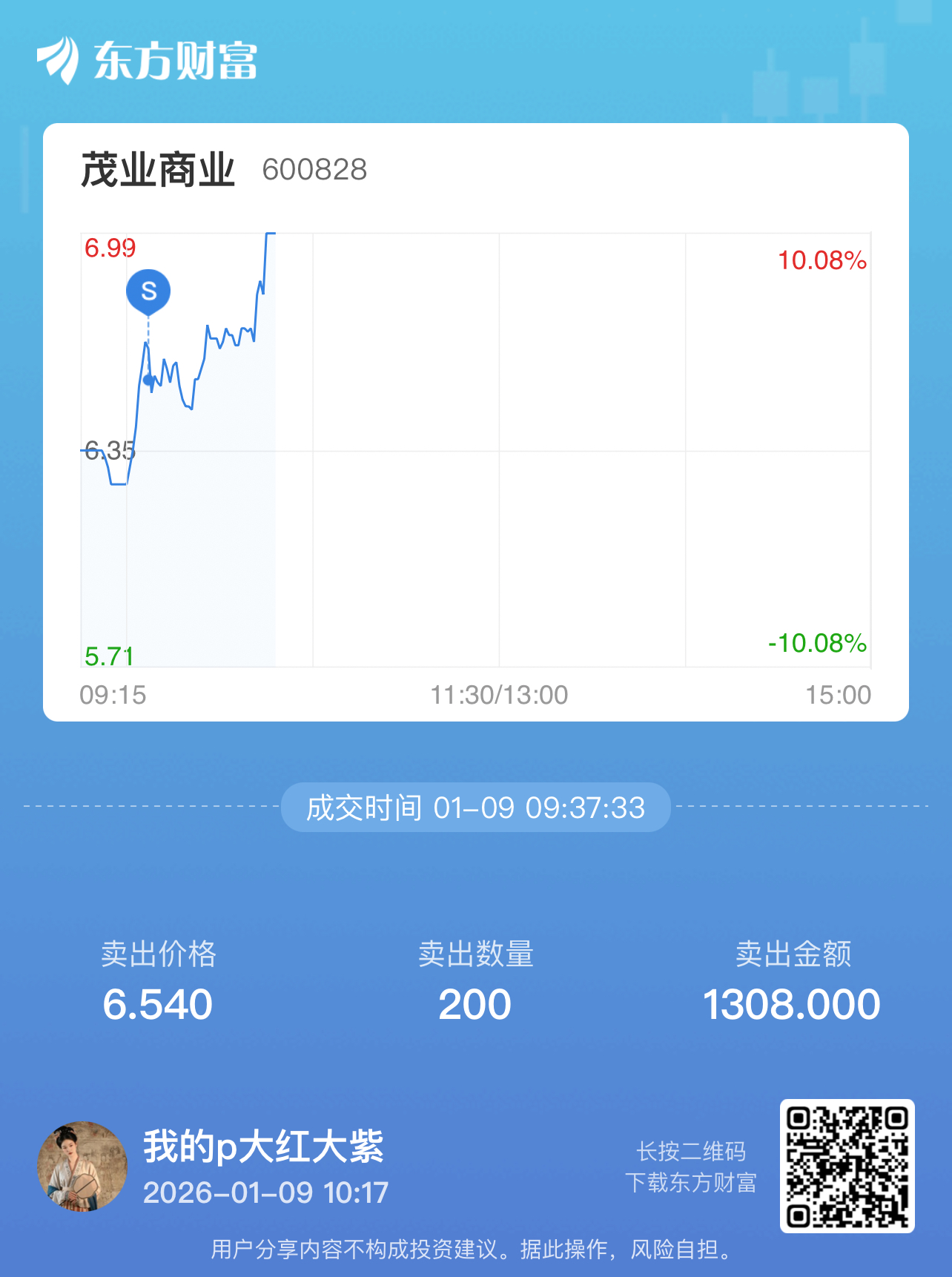 $茂业商业(SH600828)$ 卖飞,小挣一点跑了