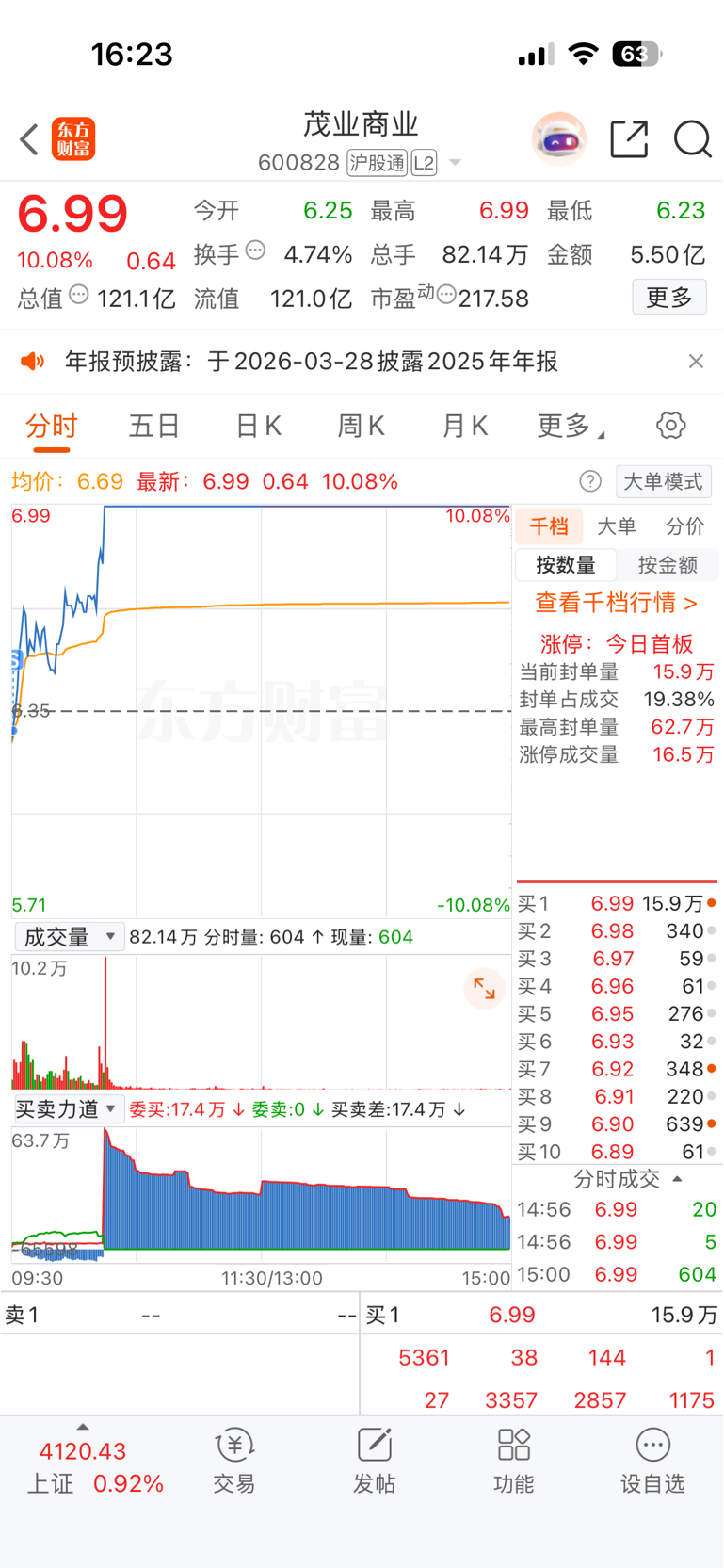 $茂业商业(SH600828)$ 我开盘最低点跑的
