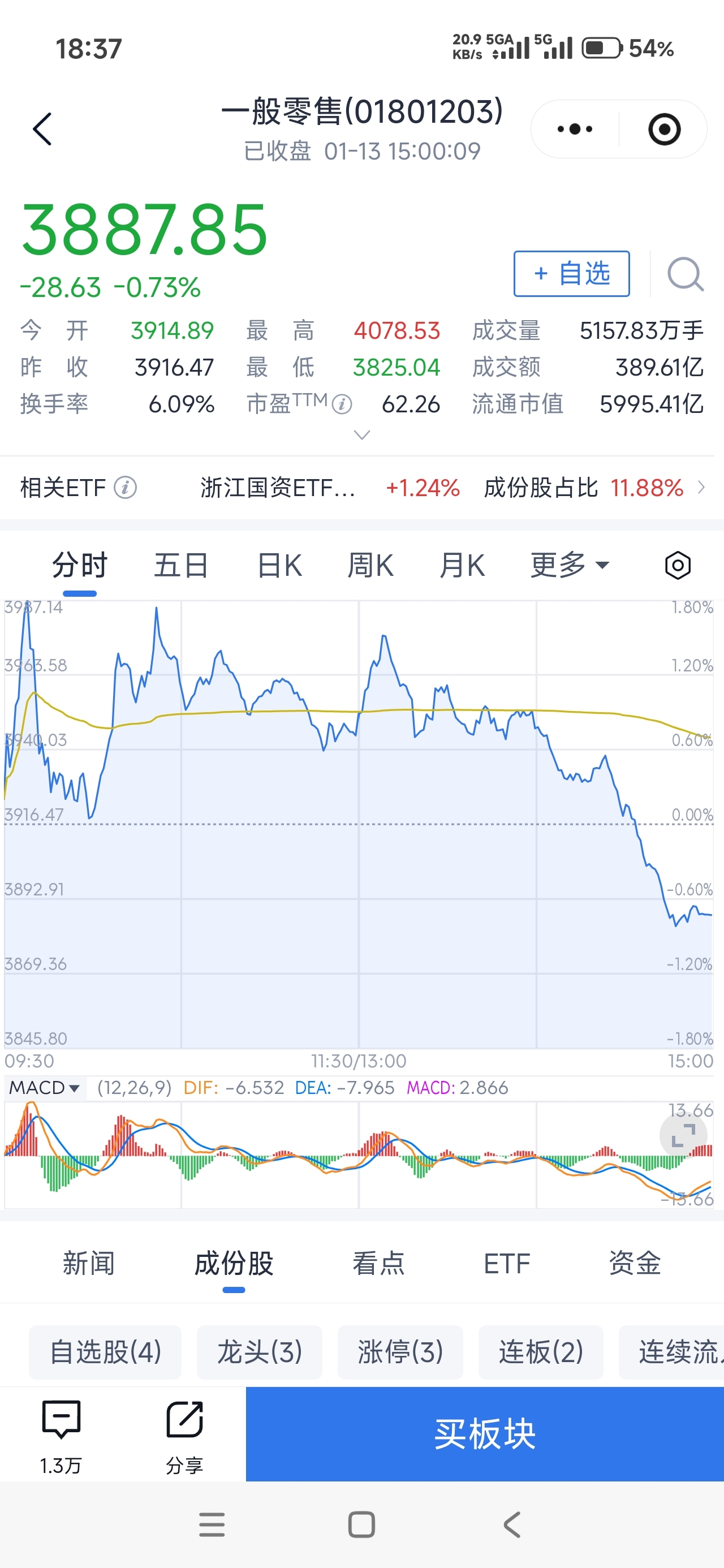 有谁能解释一下,一般零售板块日k线最高4078,但是分时图上根本没有这么高,这是