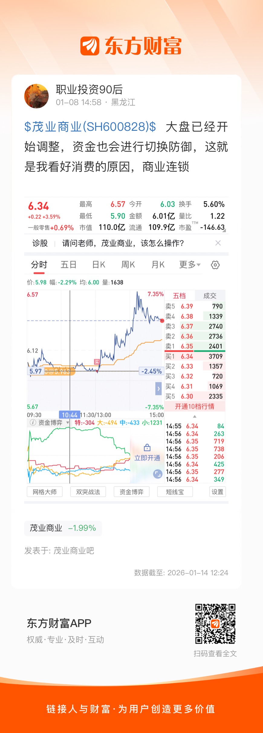 $茂业商业(SH600828)$  大盘已经开始调整,资金也会进行切换防御,这就是我看好消费的原因,商业连锁