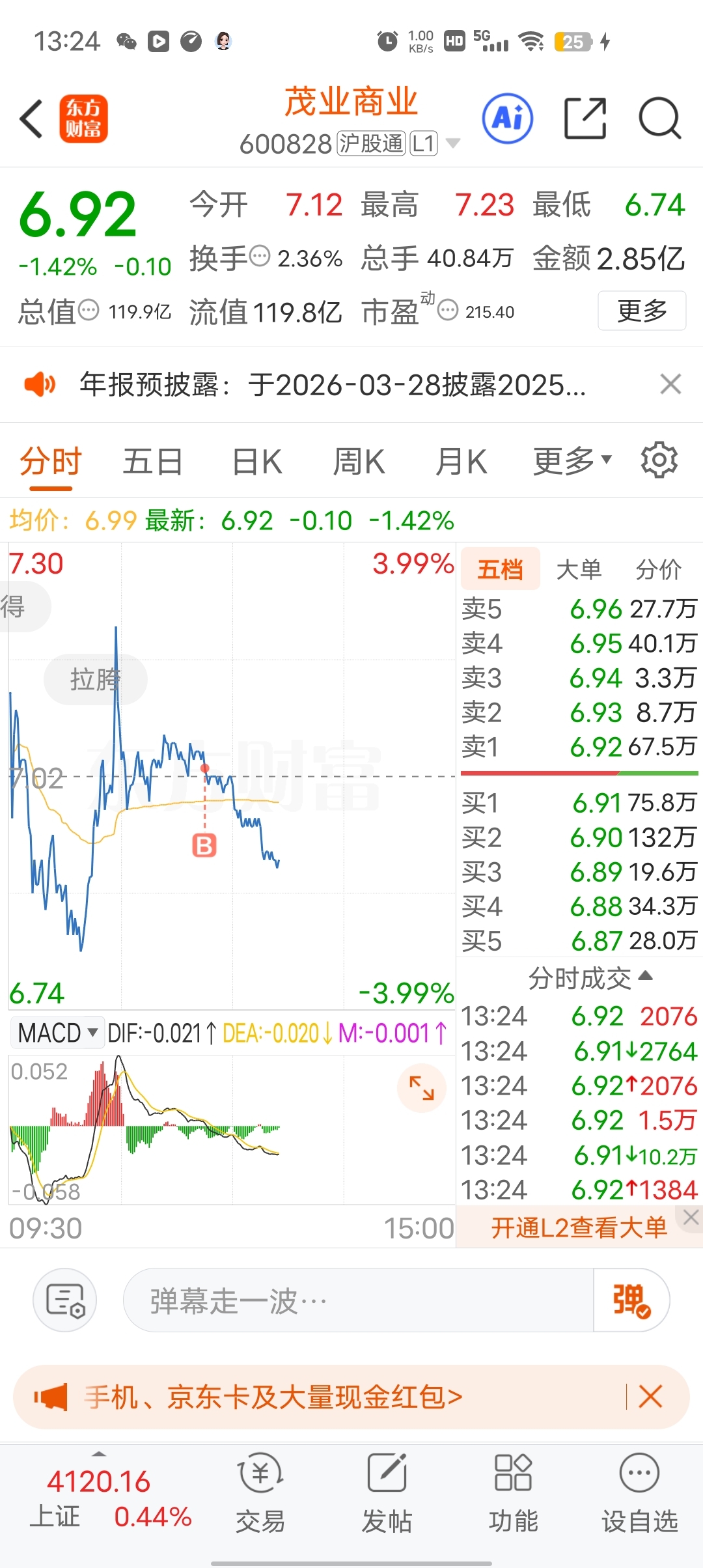 $茂业商业(SH600828)$ 对不起大家,我买了200手买崩了,观察几天了,觉得消费板块要起来了,唉